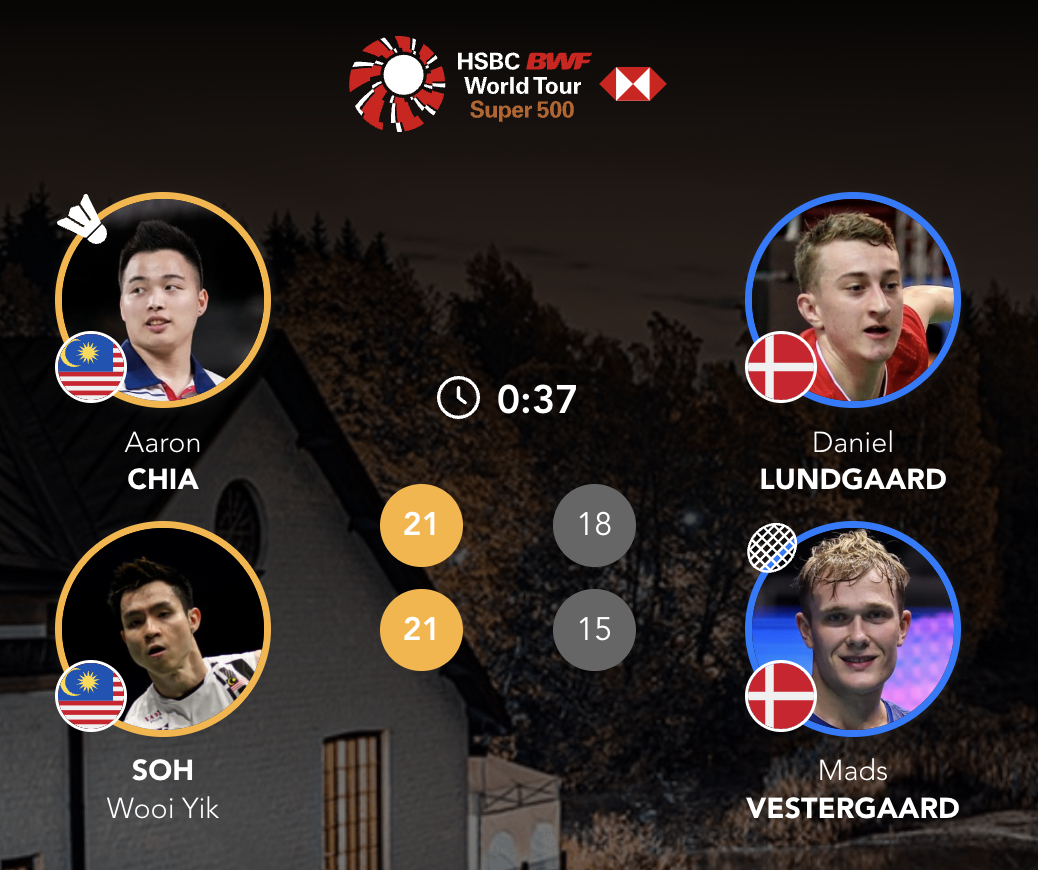 谢定峰/苏伟译🇲🇾 21-18、21-15 🇩🇰伦加德/麦斯