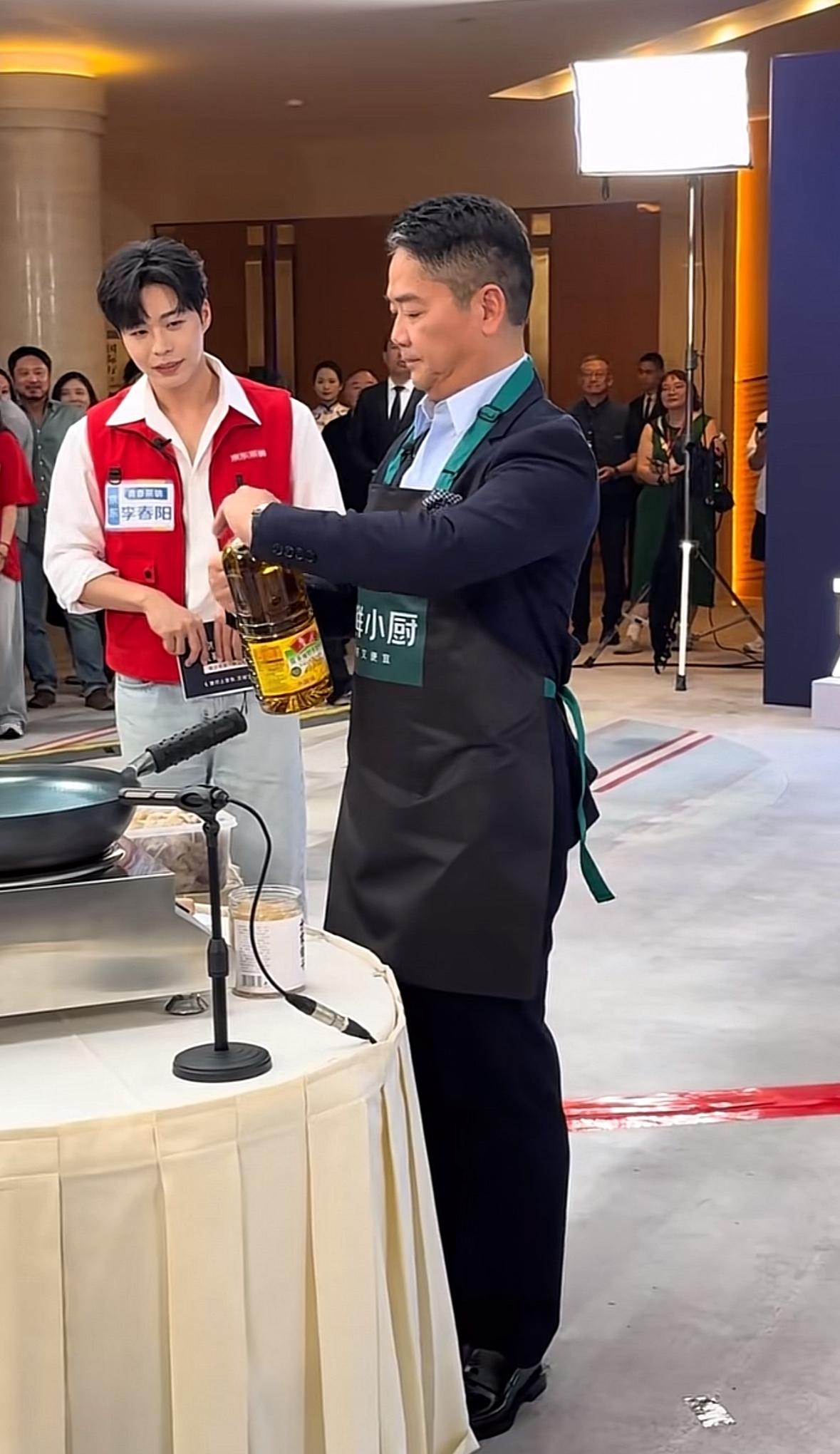 刘强东这么大的老板亲自下厨,真接地气,请问一下他拿的油是什么牌子的