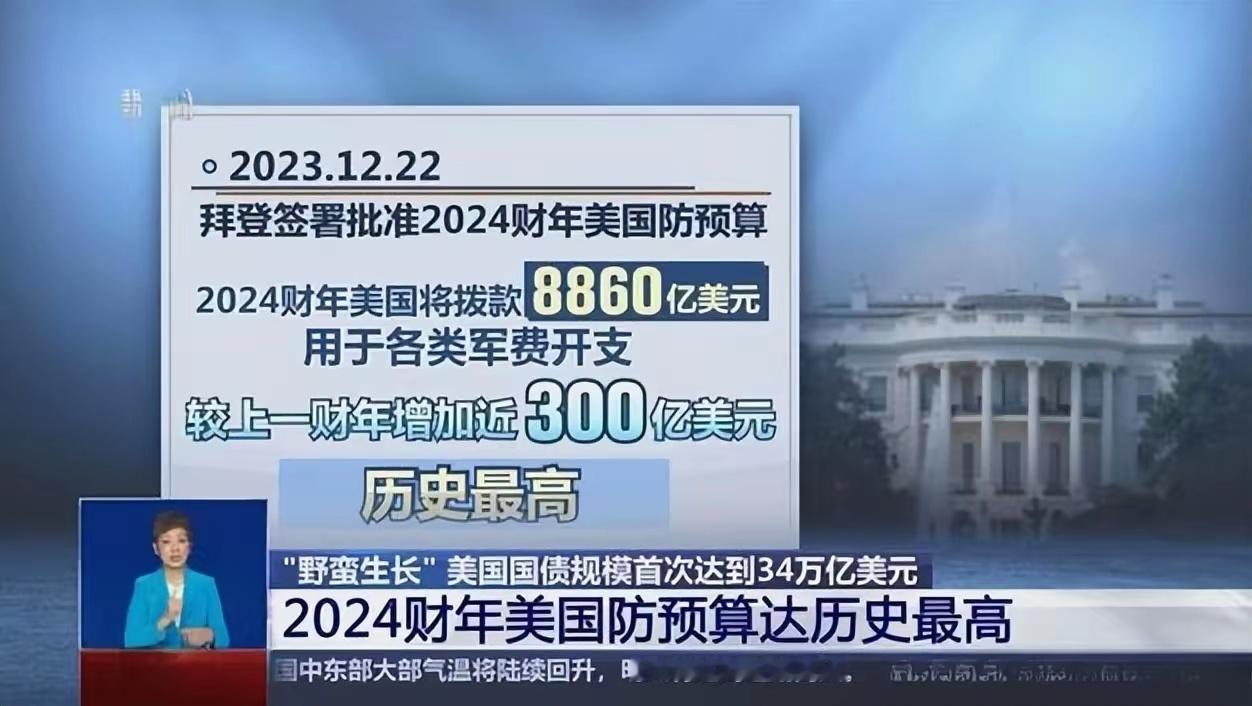 这些困境的根源,其实可以在军费账本里找到答案,2024年,美国国防预算8860亿美元。