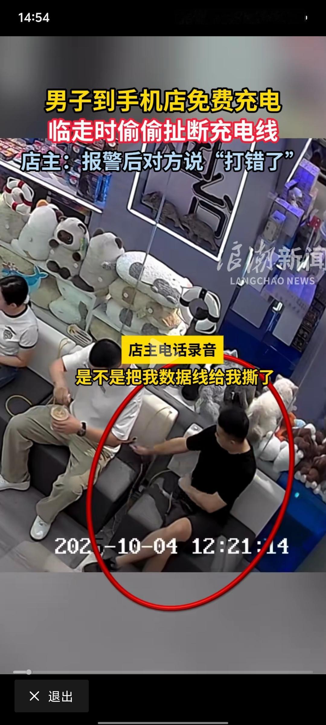 免费充电却扯断数据线:莫让恶意寒了善意的光 山东烟台一家店铺好心提供免费充电服务,却遭遇四人结伴充电后,黑衣男子临走时扯断店内数据线,报警后发现对方是外地人已驱车离开,联系还被挂断电话。无独有偶,另有男子到手机店免费充电后偷偷扯断充电线,店主报警对方竟称“打错了”。 一根数据线价值或许不高,但这种行为的恶意与对善意的践踏却影响恶劣。店主的好心成了被利用的“漏洞”,这种以怨报德的举动,不仅是对他人财物的毁坏,更是对社会善意的伤害。若放任此类行为,只会让更多人在伸出援手时犹豫,让人与人之间的信任与温暖被蚕食。 我们绝不能让做好事的人寒心。对于这种毁坏他人财物、践踏善意的行为,必须予以严厉谴责与惩罚。只有让恶行付出代价,才能维护社会的公序良俗,让善意的火种得以延续,让人们在传递温暖时不必担心被恶意灼伤。