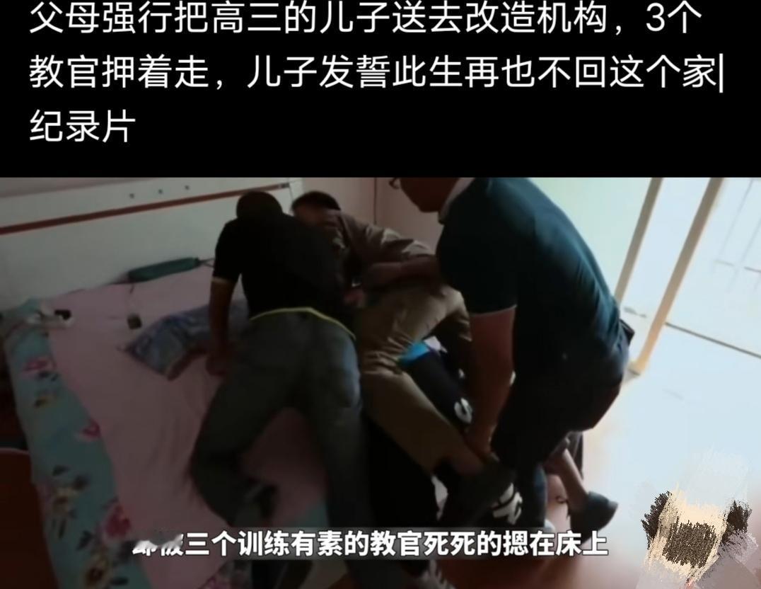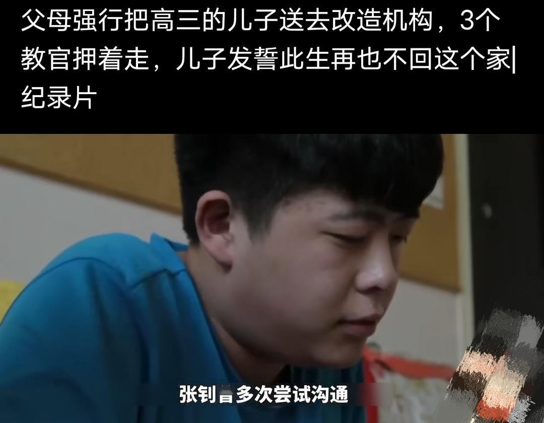 父母强行把高三的儿子送去改造机构,三个教官押着走,儿子发誓此生再也不回这个家! 今天我在一个自媒体账号看到一个让人揪心的事情,一个叫张钊的高三男孩子,在这次放假回家期间,父母找了一个他们认为正规的不良少年改造机构,没有任何商量余地的情况下,找来三个教官,强行将他押进了改造机构。 三个教官到他家的时候,他声嘶力竭地怒吼,歇斯底里地反抗,反问父母,难道没有看过报道吗?如果把他送去那里,他就死磕在那里,再也不认父母俩,很多报道确实让人看到的是那样的:被送去的要么电击要么体罚,只有乖乖听话一个选择,都是用暴力和恐惧让一个人麻木。 张钊的父母像是下了很大的决心,脸上没有半点波澜,当张钊被送到机构后,他也只能孤独地蜷缩在角落里流泪,父母说他不但叛逆不听话,还早恋了,脾气也从此变得暴躁了,带女朋友到家里,从里面把大门反锁了,父母只能在自己门店里住,在父母眼里张钊已经失去了父母的信任,同时张钊也得不到父母的理解。 通过相关工作人员的了解,其实张钊尝试过跟父母沟通,但是每次都会被父母否定并贴上不良少年的标签,他其实不是不想好好读书,他也想考大学,只是学校的环境让他很压抑,他的痛苦父母不理解也不关心,就只认为孩子什么都不好了。 其实教育孩子真的不是一件简单的事,特别是青春期的孩子,他们有自己独立的思考,想法,也比较自我,很少能所有事都乖乖听父母话,听父母安排的,很多父母也都需要学习如何教育孩子,我在教育我的孩子时也常常感到无力,但是每天有多少像我们普通阶层的父母,在累一天后面对孩子的各种问题还能完全平心静气地好好沟通的,有,我也相信可以做到,但不容易。 作为成年人,作为孩子的父母,作为过来人,还是得我们给更多的理解和爱给到孩子们吧,反着这样要求他们是很难的。