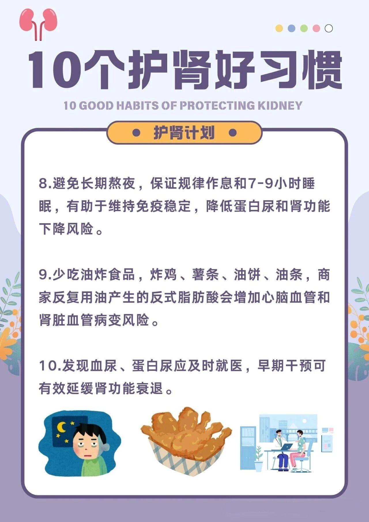 10个护肾的好习惯,要记好了!。1.晨起喝杯温水,稀释经过一夜睡眠后浓缩的血液,有助减轻肾脏负担。