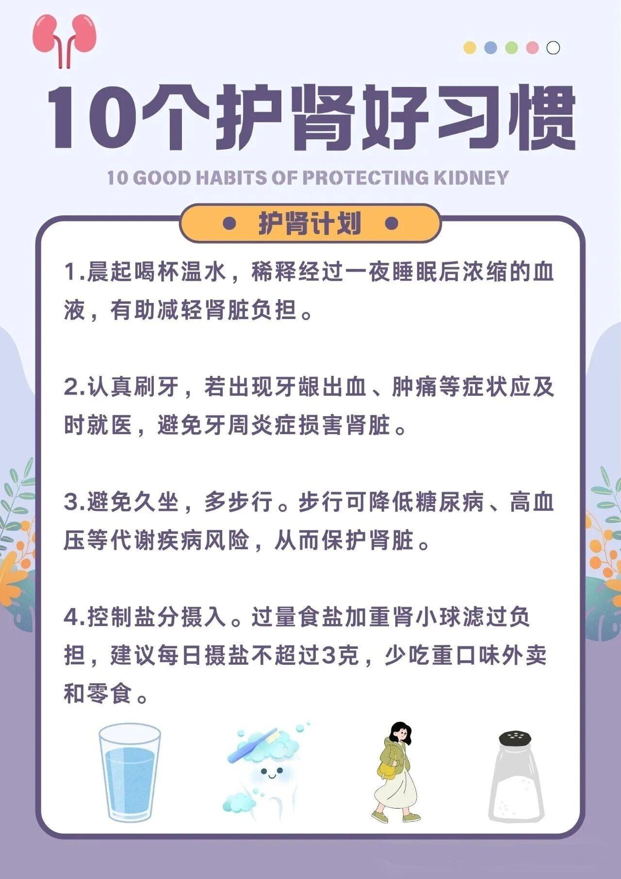 10个护肾的好习惯,要记好了!。1.晨起喝杯温水,稀释经过一夜睡眠后浓...