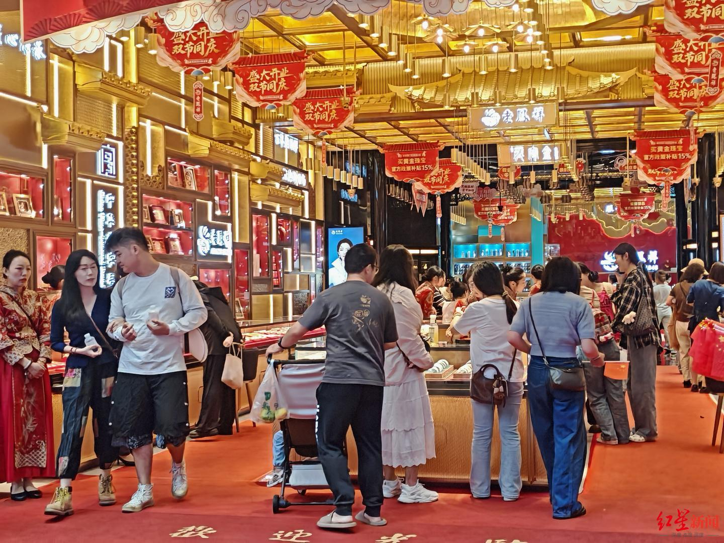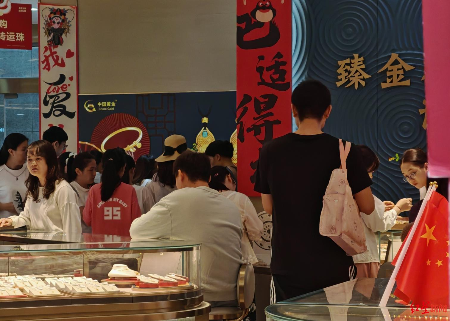 国庆中秋双节期间也迎来黄金消费热潮。10月8日,记者走访成都梨花街珠宝市场、春熙路等商圈,虽然已是长假最后一天,但购买黄金的市民、游客依然络绎不绝,多家黄金门店迎来大客流。