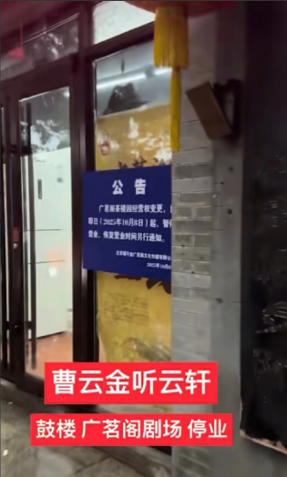听云轩被广茗阁轰出来了,据说是经营权变更,前期合同作废。好多曹云金的黑粉奔走相告,估计晚上得喝点庆祝庆祝。其实这也不是什么大事,毕竟曹云金的主要精力在网络直播和线下商演上面,小园子的演出已经不景气了,属于赔本赚吆喝。 其实这事也怪不得广茗阁,人家做买卖为了挣钱,吸引听云轩肯定是为了卖票。但是听云轩的演员票房吸引力差,在这演出无非是锻炼演员压压活,剧场挣不到钱肯定要换人。但是换人的过程不太友好,没做到好聚好散。之前曹云金的小剧场干黄了好几个,看来这个生意已经到头了,还是专心搞直播吧。