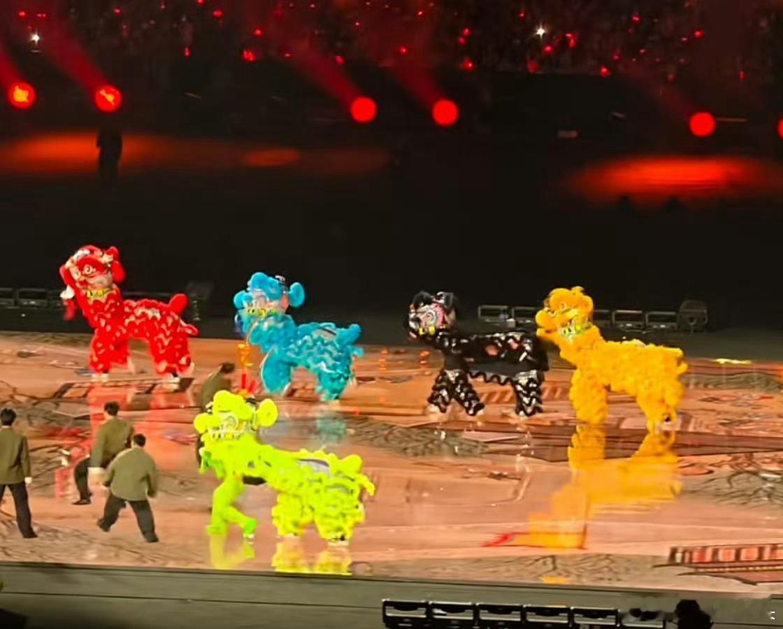 张艺兴鸟巢演唱会的巧思!五只舞狮是奥运五环的颜色,张艺兴穿的绿色,福娃妮妮原型是