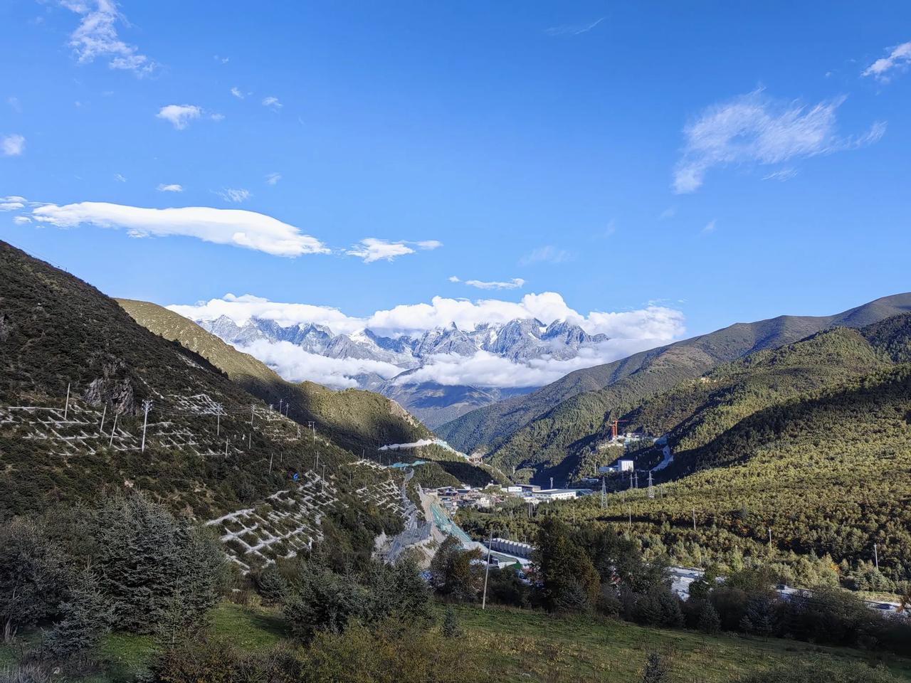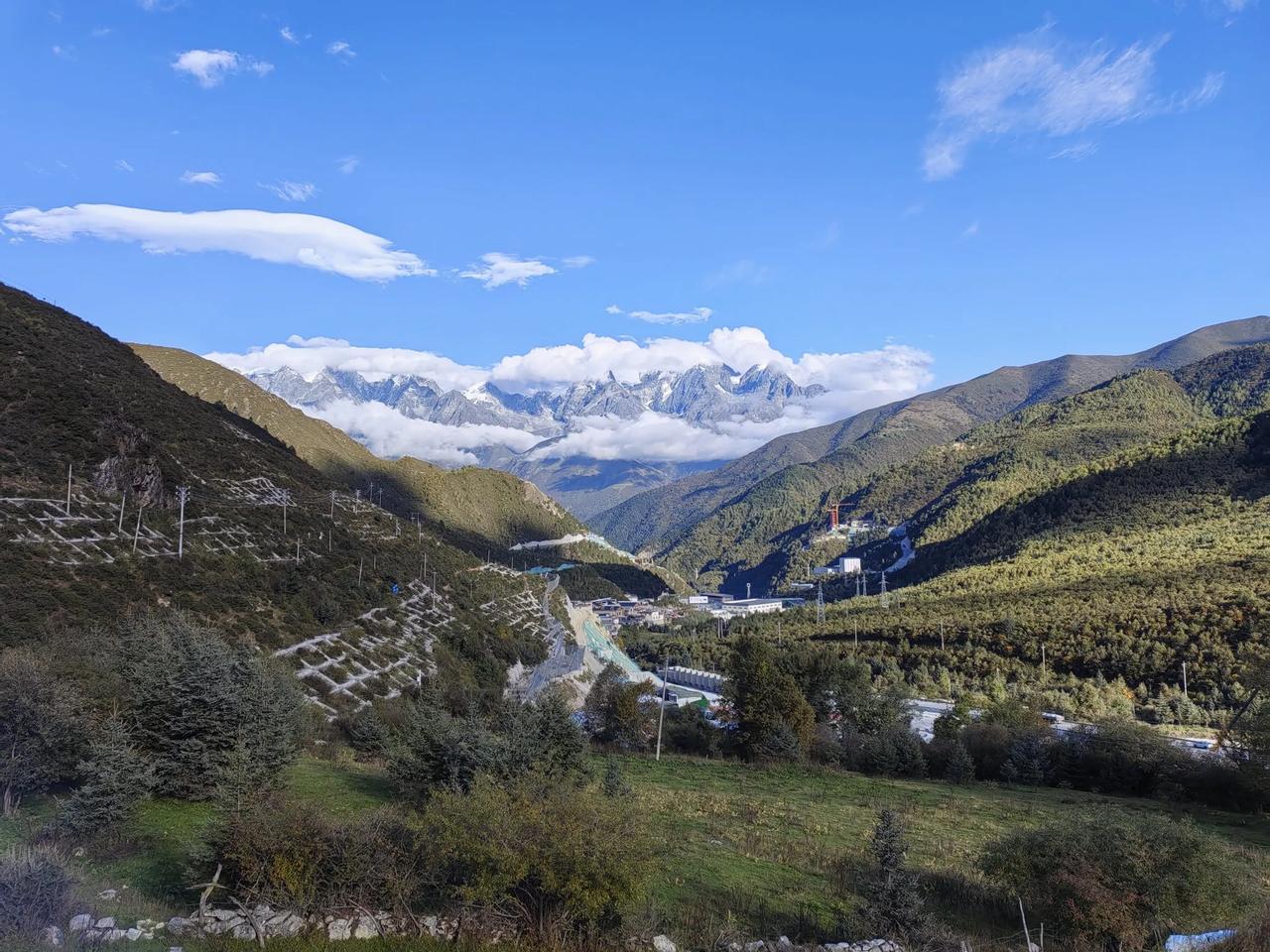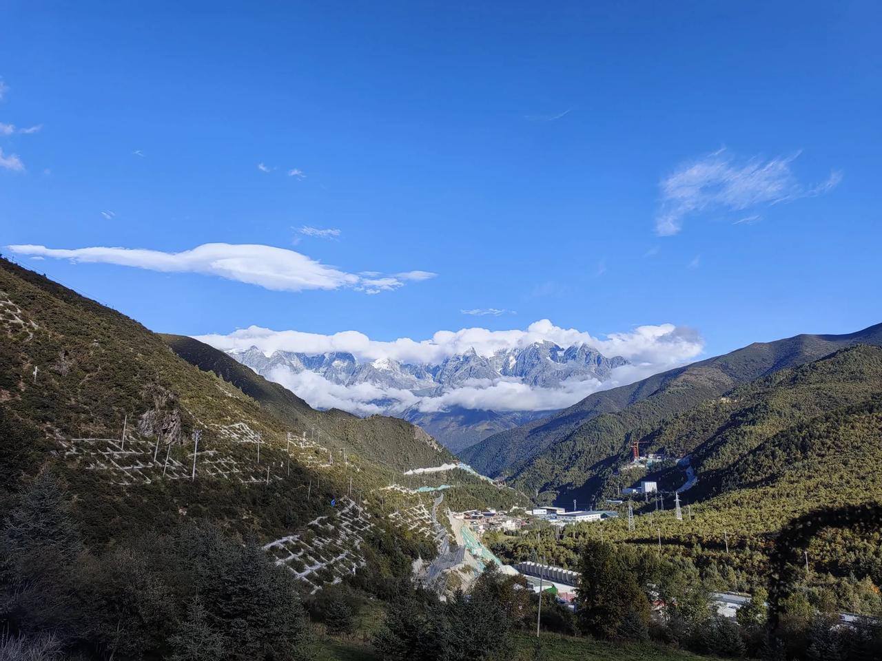 偶遇胜景折多塘 今天10月8日,是国庆与中秋双节长假最后一天,我们一行三人自蓉城驾车回新都桥。待进入康定境内,车轮碾过蜿蜒山路,午后四点恰至折多塘。此处雄踞折多山半山腰,本是行程中寻常一站,却藏着不期而遇的惊喜 。 我们为什么会在此地下车?原来,转弯时的一刹那,三人的目光齐刷刷都被远处的雪山和云霞攫住了。彼时斜阳正好,金辉漫过雪巅,将蓬松的白雪染得愈发晶亮,似千万片碎钻在阳光下流转。山风轻拂,白云慵懒飘荡,时而掠过峰顶,为雪山披上轻薄纱衣;时而悬停山腰,与漫山彩林相映。枫红似火、桦黄如金、松绿凝翠,斑斓色彩层层叠叠,顺着山势铺展开来,与洁白雪山、澄澈蓝天构成一幅绝美的画卷 。 空气里没有一丝尘埃,深吸一口,满是清冽的草木与雪的气息,连呼吸都变得小心翼翼。我们举着相机,快门声此起彼伏,却总觉得镜头无法捕捉这份极致的美。驻足良久,无人言语,只静静望着眼前的景致,任那份晶莹剔透的美好漫过心间,连时光都仿佛在此刻慢了下来 。 这般景致,非刻意寻觅所得,恰似天地馈赠的限定礼物。待暮色渐浓,才恋恋不舍离去,只将折多塘的午后晴光、雪山彩林,连同三人共享的这份惊艳,一同珍藏在记忆深处 。
