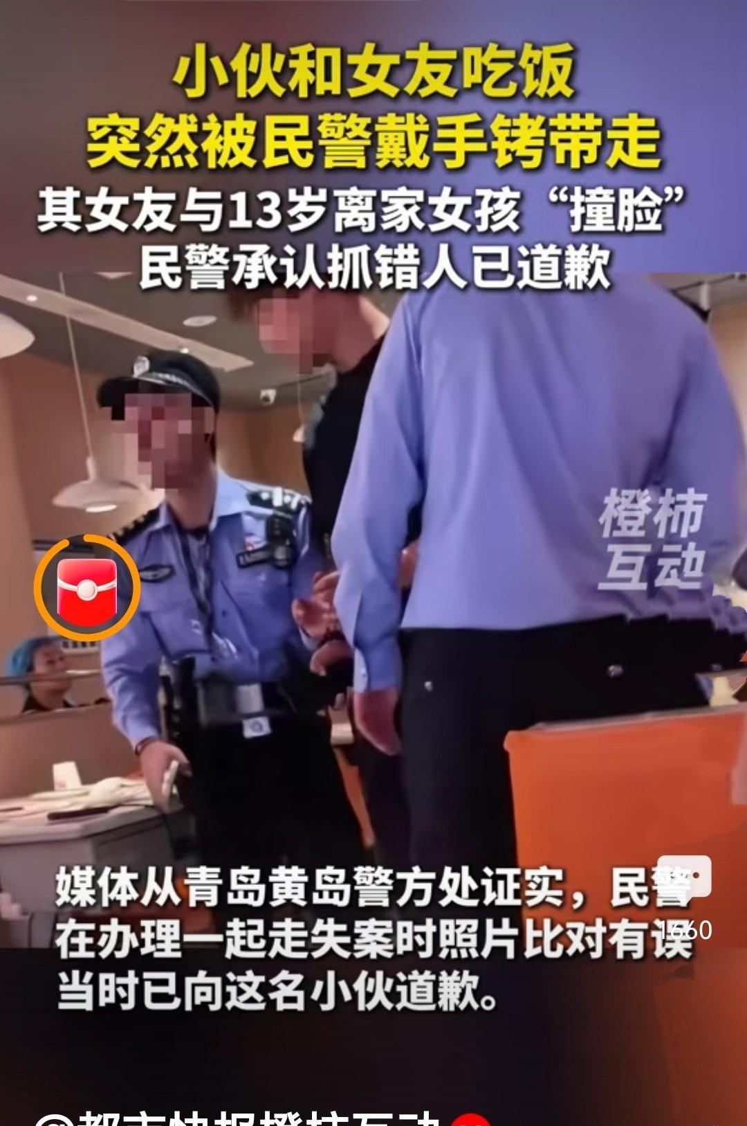 《警方回应小伙与女友吃饭被铐走》青岛这起执法乌龙看得人五味杂陈。餐厅里正吃饭