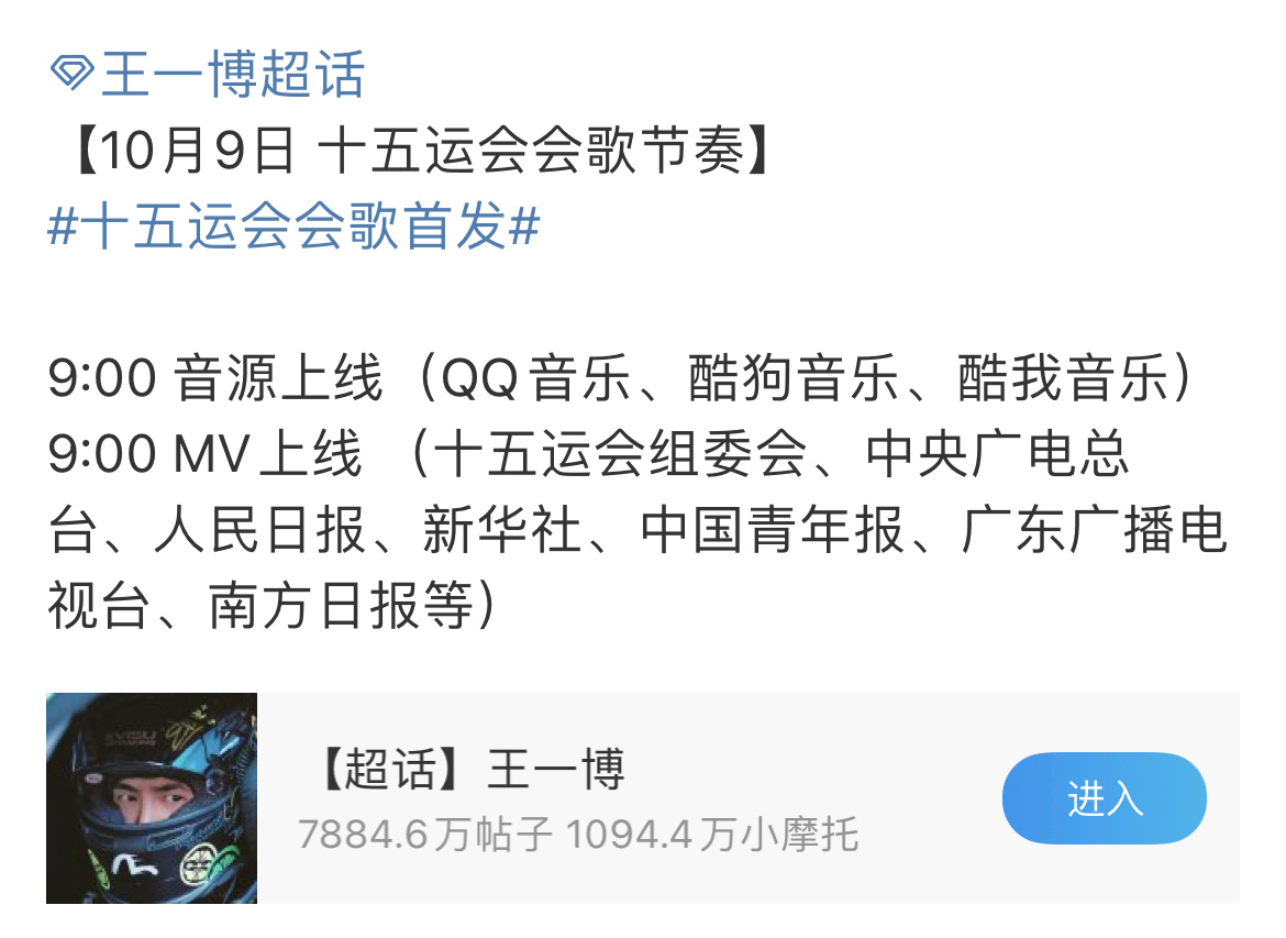 📣王一博十五运会会歌发布预告!!!你家博帝的一天[666]