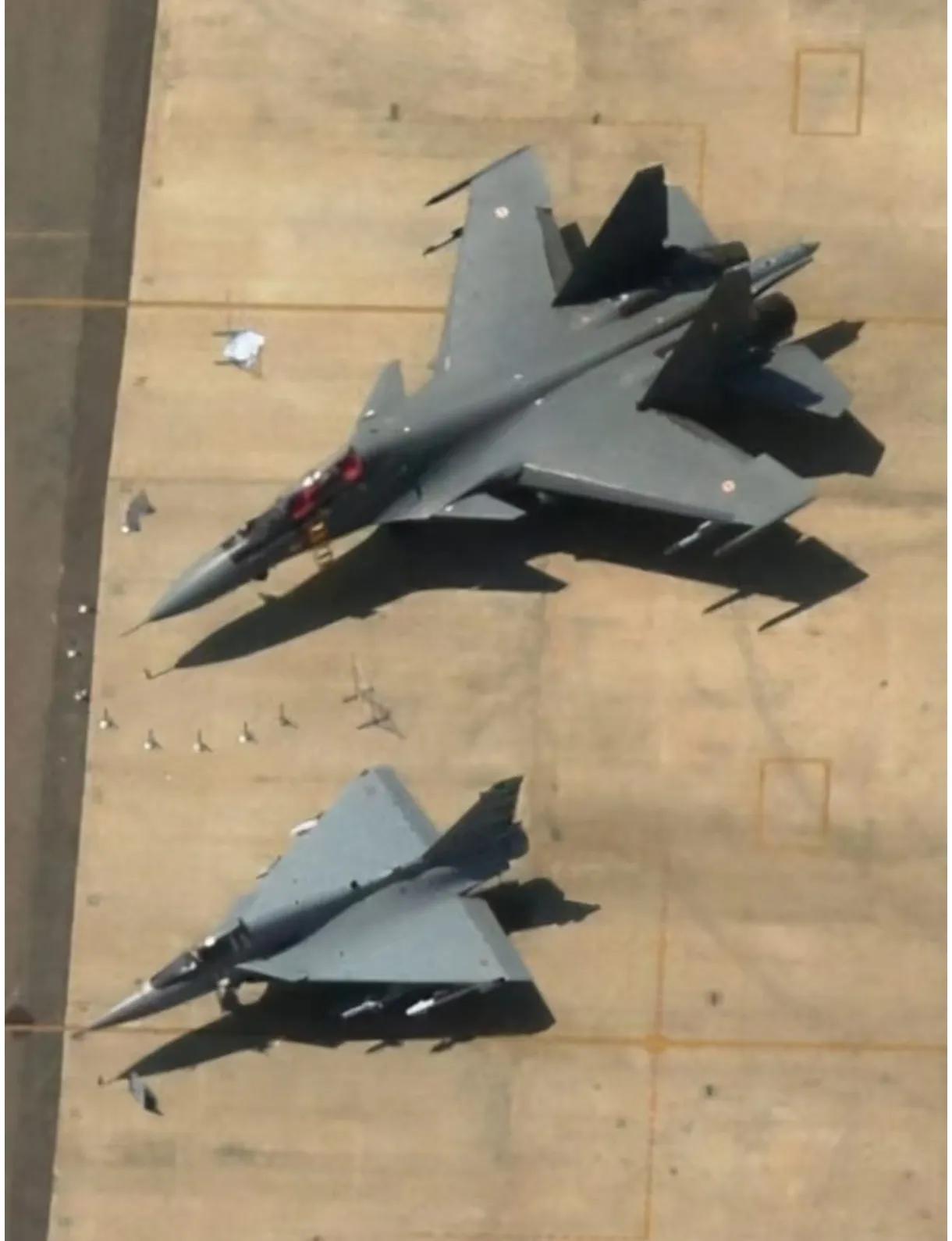 印度光辉vs苏-30:同框大小差一倍,战斗力更是天差地别。 光辉战机全长才13.2米,翅膀展开8.2米,差不多就一辆中巴车大小。 苏-30却有21.9米长,翼展14.7米,体型快赶上一辆公交车,尺寸几乎是光辉的2倍。 再聊战斗力,光辉胜在灵活,机身小不容易被雷达盯上,近距离绕圈格斗还行,跟F-16的近战水平接近,但短板太明显——挂弹少,早期型号就7个挂点,带不了多少武器,主力导弹射程才80公里,而且动力不够,飞不远、也飞不快,打不了远程奔袭。 苏-30就不一样了,堪称“全能选手”:雷达能探140公里远,能同时盯着15个目标、打4个。 发动机带推力矢量,空中随便翻跟头,超机动能力拉满; 最多能挂8吨弹药,不管空战还是对地打击都样样在行,而且能飞1500多公里,远程作战、巡逻都靠谱,整体战斗力比光辉强出一大截。