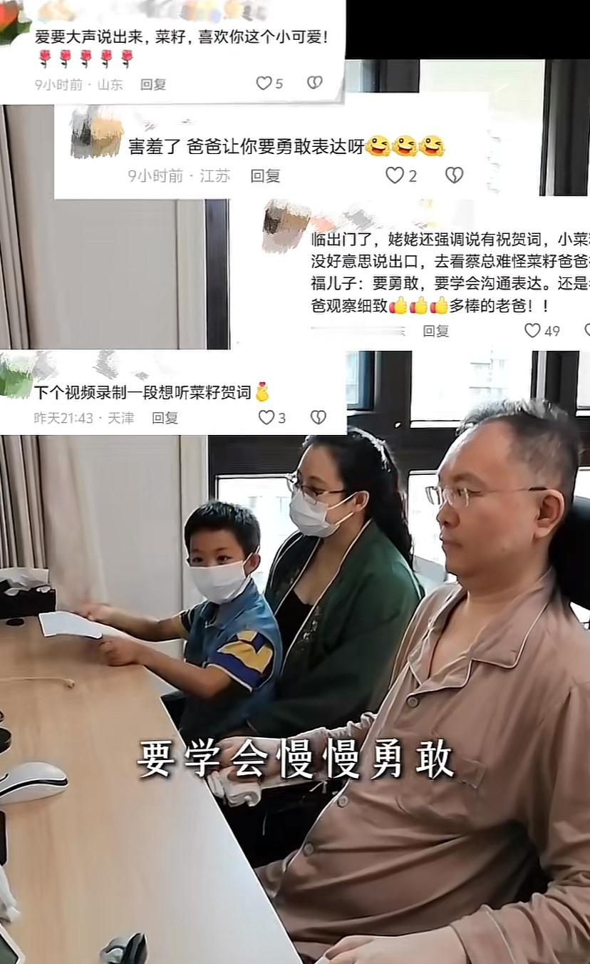 蔡磊又出镜了,全家教儿子练口才,小菜籽越来越会说,肚里的词一套一套的。爸爸鼓励他勇敢的表达,多与别人交流。金箍棒,银箍棒,我的菜籽妈妈你最棒。小小年纪这么懂事,学习一定差不了,菜籽姥姥也很棒,把孩子教育的这么好。
