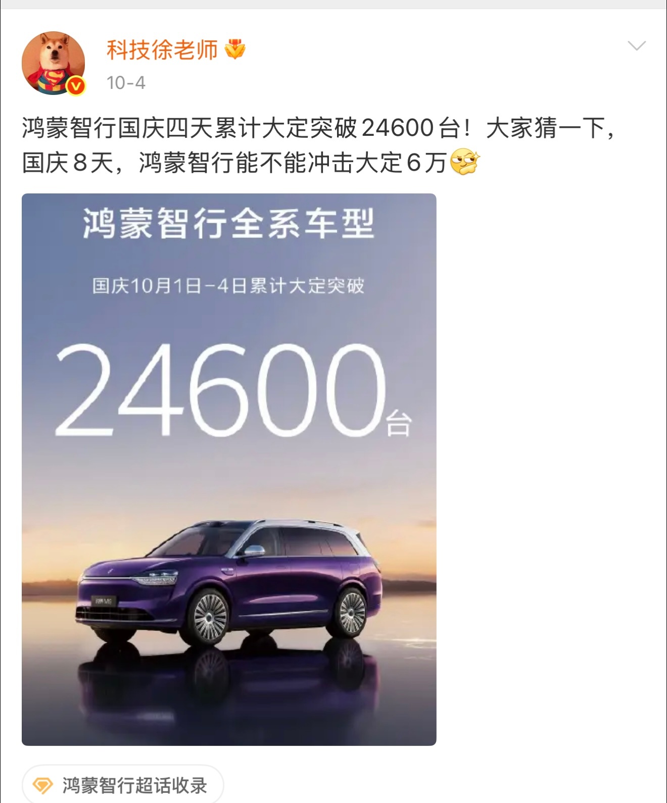 鸿蒙智行国庆热销圆满收官,累计大定突破48500台!当时还说,这个国庆假期能不能