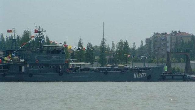 武警安徽总队装备的069型登陆艇(图1)。武警内卫系统设有船艇大队的支队大约有二十个,设有船艇中队的可能更多。理论上辖区内有航运水道或者沿海支队都要设船艇(部)分队,重庆总队可能是因为三峡水库的缘故,有个船艇支队。 069型登陆艇,又称玉清级小型多功能登陆艇,其标准排水量仅58吨,满载85吨,全长24.8米,宽5.2米,吃水1.4米,最高航速仅11.5节,但是可以装载150名以上全副武装的士兵,也可以运送中型坦克,主要用于在没有港口的内河和海岸实行两栖攻击和运送车辆、部队和货物。我国从上世纪60年代起造了三百多艘,主要装备海军和陆军海防部队的船艇部队,安徽总队的这艘估计也是从陆军海防部队转过来的。