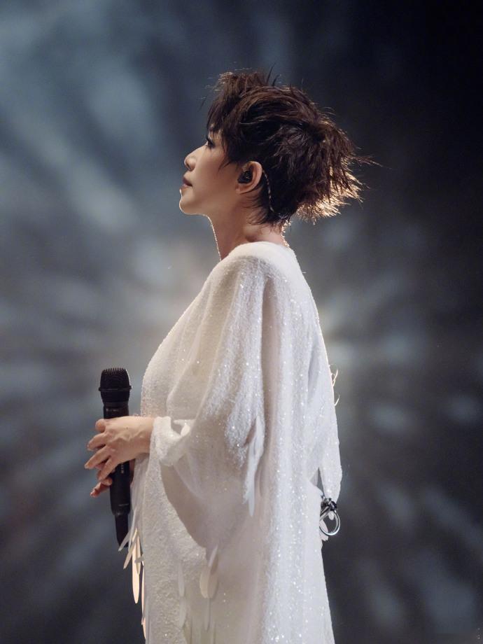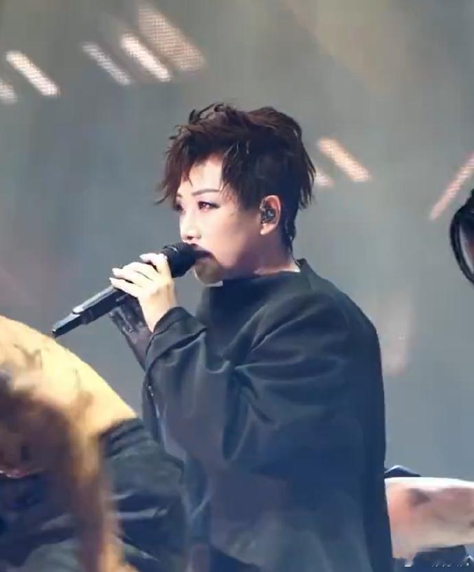 林忆莲帅成啥了 舞台灯光打在她脸上时,我直接被帅到窒息!穿解构风衬衫配长裤,冷脸唱歌时像艺术家,结果谢幕时又比爱心,反差太戳人!