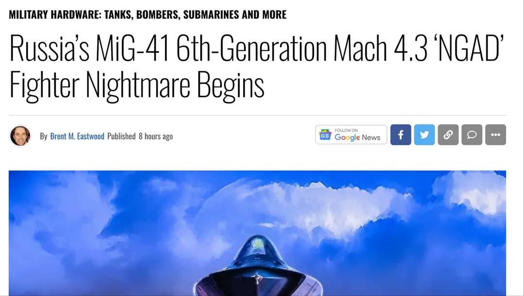 眼见中美六代机都己出炉不甘落后的俄罗斯既将推出自己的六代机米格41 据美国《国家利益》10月8日消息,俄罗斯既将于年内推出自己的六代机-米格41。眼见中国的歼50,美国的F47该上天的上天该出PPT的出PPT,航空大国俄罗斯必须跟上,提出25年亮相六代机,30年完成首飞。 只是不知在产量最低的五代机大俄的苏57,只有不足30架的情况下,现在又跳过苏霍伊而学美国换家航空公司弄个米格41。难道六代机真是大白菜,跳过五代机就能随便弄。静等三个月后俄罗斯官宣他的六代机吧!