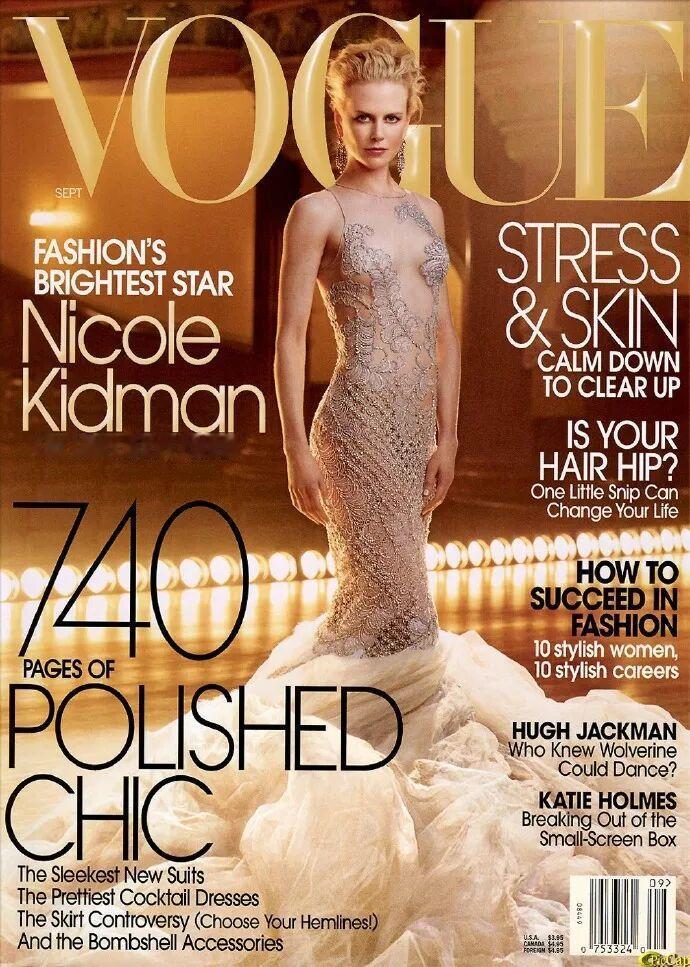 妮可·基德曼(Nicole Kidman)第九度登上《VOGUE》美国版杂志封面,如此傲人的成绩,继续稳稳保持着明星登封数量的记录,堪称时尚界的传奇典范!