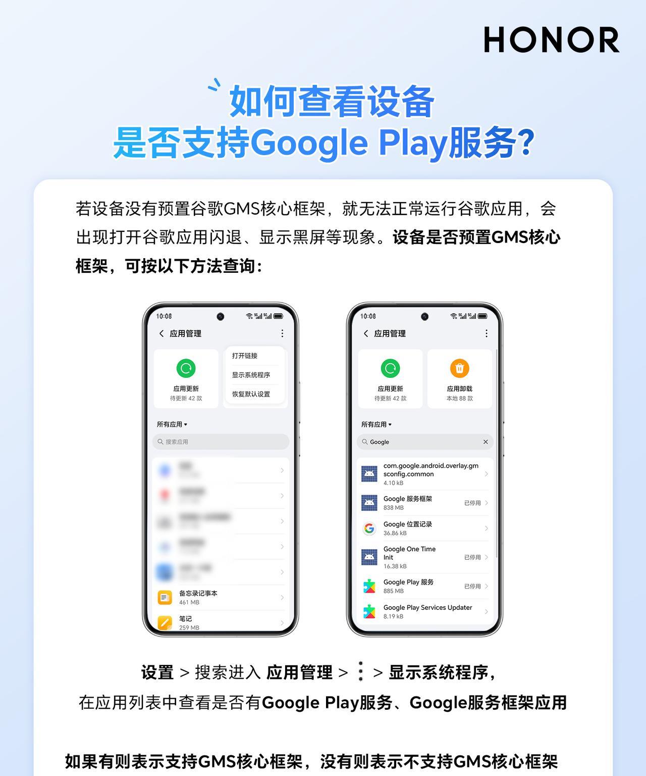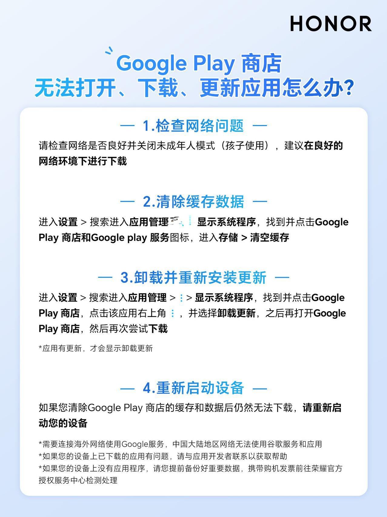 荣耀手机能不能使用GooglePlay服务呢?荣耀客服通过一组图文内容,就将这