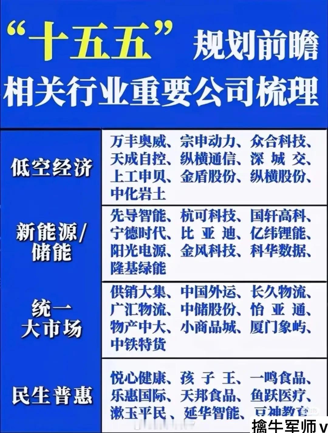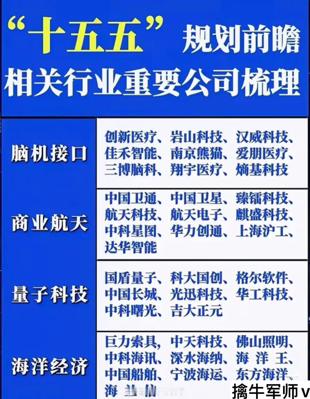 综合来看,以上系统梳理了“十五五”规划中多个关键行业及其代表性公司,涉及科技创新、高端制造、新兴战略产业以及民生经济等多个维度,反映出未来五年国家产业发展的重点布局与参与主体。