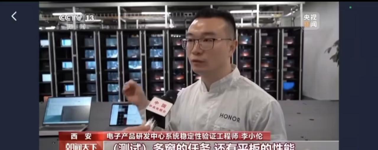 荣耀上央视了!大家忙着过节,荣耀国庆节期间忙着给大家准备新机器 十一期间,荣耀西安研发中心没放假,而是忙着给大家测试新平板,可能你即将会买到的MagicPad3 Pro,就是图中这款