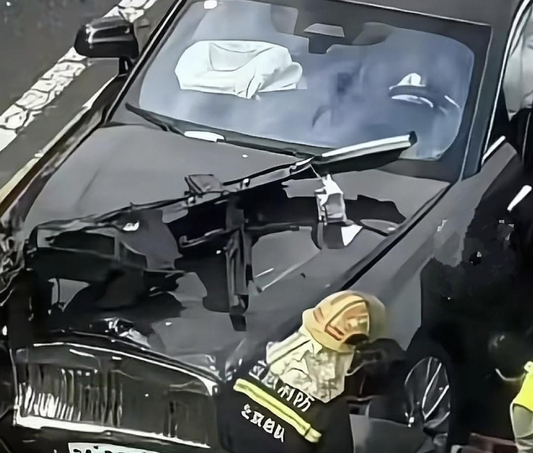 比亚迪被撞飞几十米,车头快没了 接近700万的劳斯莱斯闪灵,车头损毁严重 汽车博