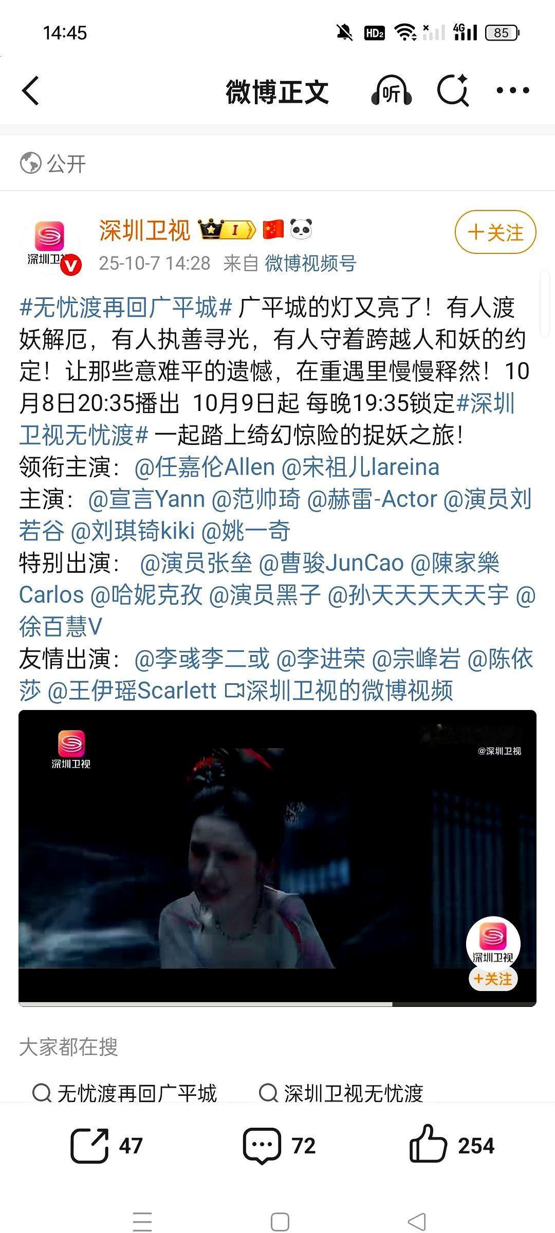 任嘉伦的新剧《无忧渡》明天晚上八点半在深圳卫视开播,这可是第一次上电视。 以前大家只能在手机上看,现在能正儿八经坐在沙发上追了。 这剧讲的是人和妖谈恋爱,听着玄乎,但演员演得真,特效也不糊弄,网上口碑一直不错。 任嘉伦演戏不靠颜值撑,一部《锦衣之下》火了,接着《周生如故》又圈粉,这次换了个奇幻题材,还是那股子认真劲儿。 电视平台肯播,说明内容真有看头,不是靠流量堆出来的。 咱老百姓追剧,图的是踏实、有味道,不是花里胡哨。 别光刷短视频了,明晚八点半,打开电视,看看这剧能不能让你放下手机,安安静静看一集。 好戏,值得等。
