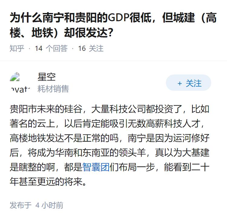 为什么南宁和贵阳的GDP很低,但城建(高楼、地铁)却很发达?