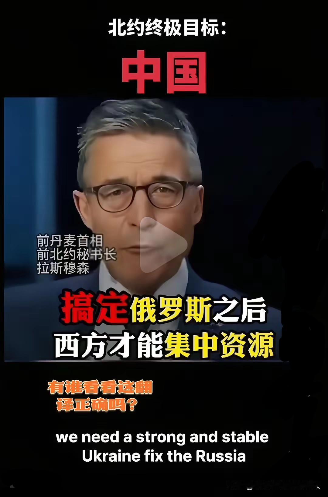 终于肯承认了。 北约秘书长:北约的终极目标,是对付中国。 (削弱?瓜分?乃至,踏