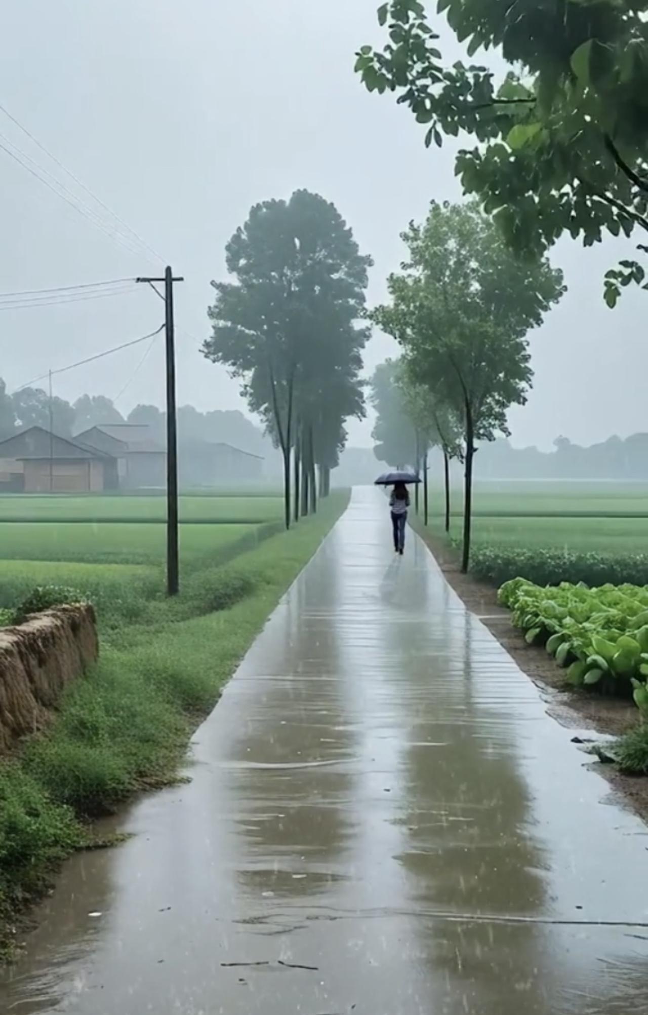 绝句·雨中情 细雨斜织湿野径,伞花一朵伴风行。 田畴漠漠烟光里,独有幽思寄远情。