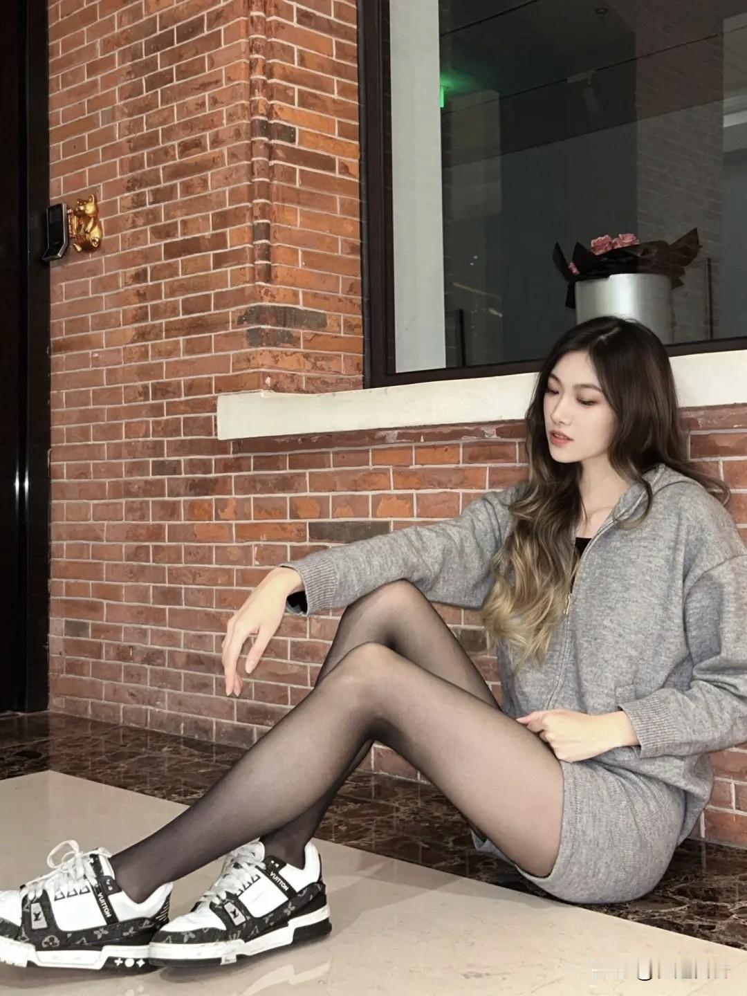 运动风也可以搭配黑丝,真是人美穿什么都好看!