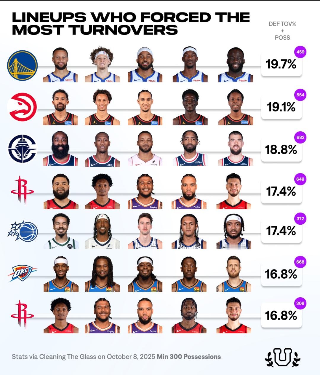 勇士队高据榜首(每百回合让对手失误19.7次)