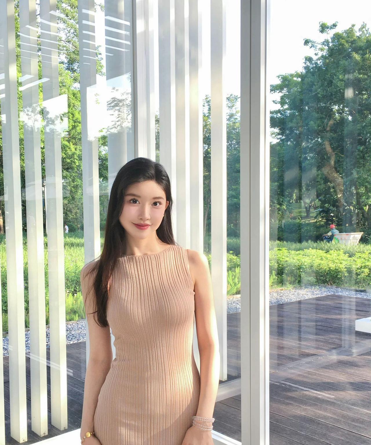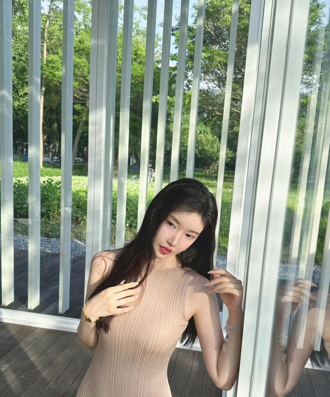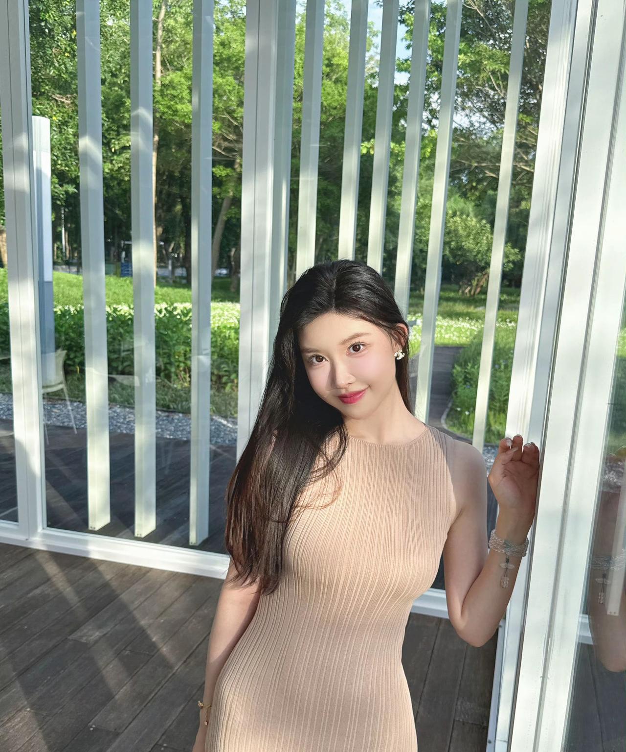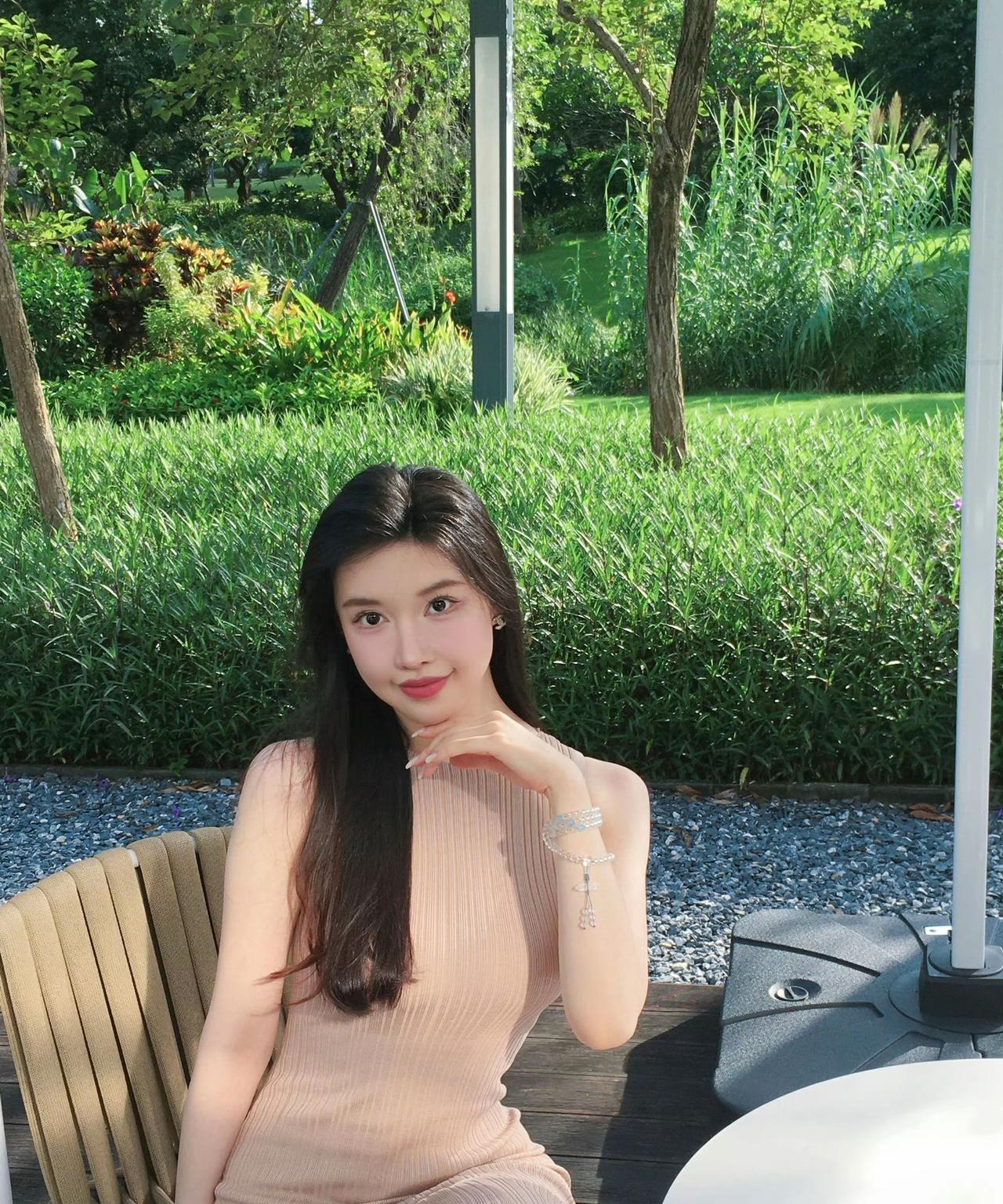 阳光明媚的午后,坐在花园里的少女,微笑着享受美好时光。