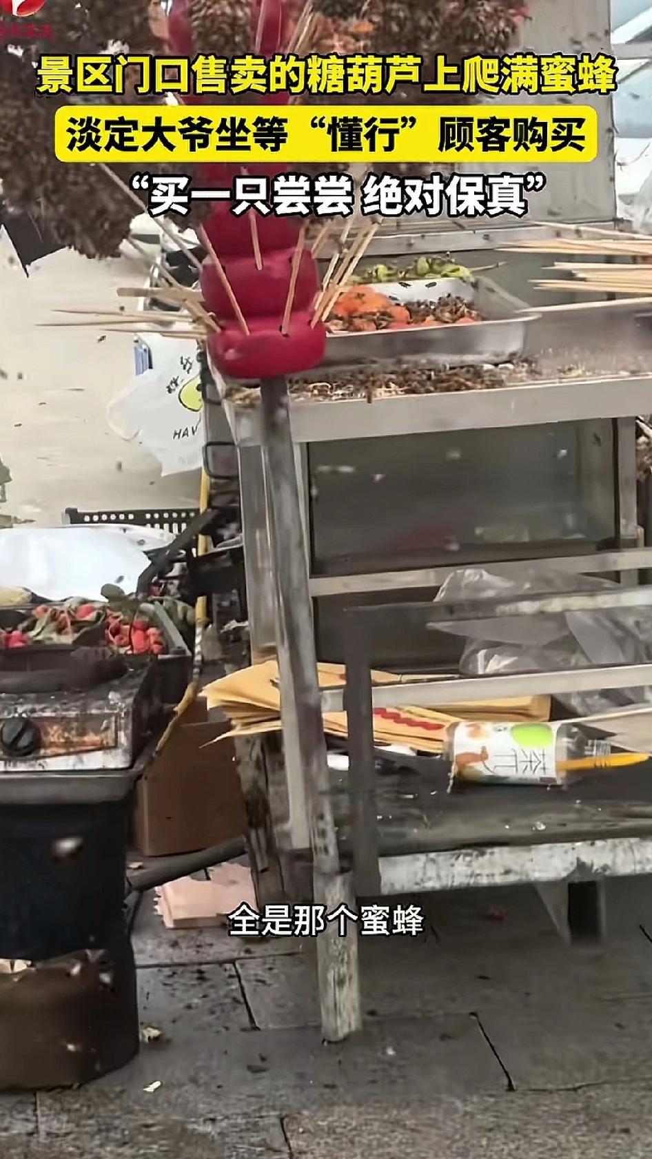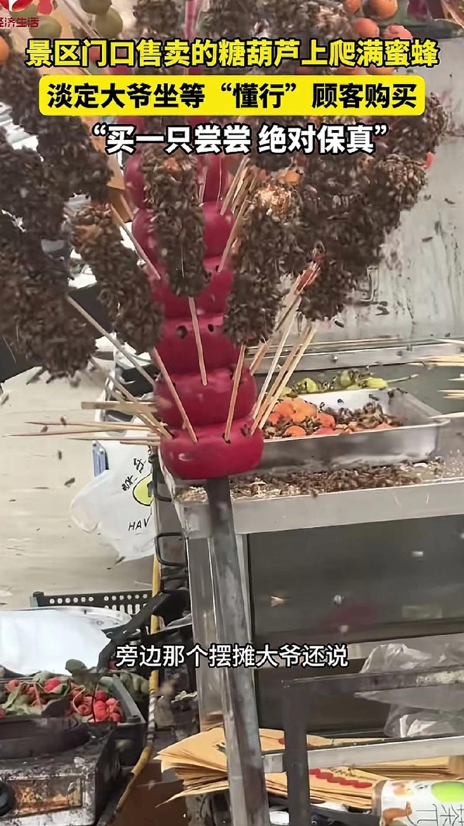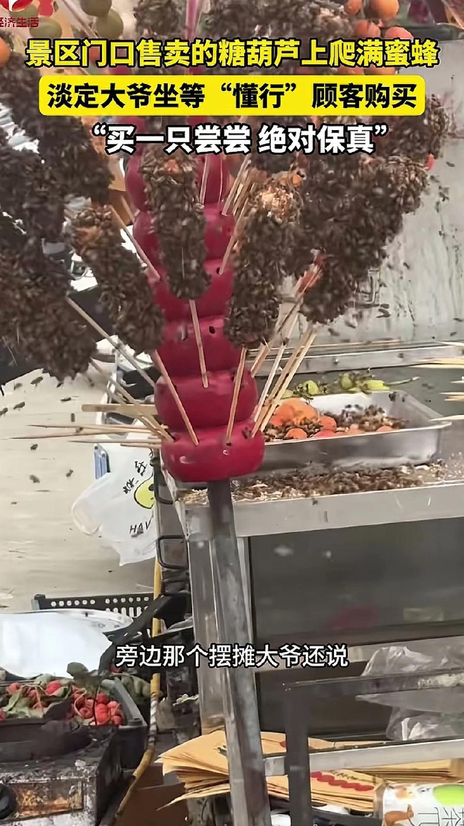 大爷在路边卖冰糖葫芦,远看好像爬满了苍蝇,近看全是蜜蜂。大爷说,卖给懂行的人。到底谁是懂行的人我们也不清楚。但是,大爷你好歹用塑料口袋套一下,免得冰糖葫芦上全是路边的灰尘。再说,冰糖葫芦本来就有很多糖,吸引蜜蜂很正常,不是吸引了蜜蜂就能证明没有科技与狠活,也不是吸引了蜜蜂就能证明用料朴素。再说,我亲眼看到过蜜蜂上厕所,蜜蜂的手脚上难免粘了一些脏东西。所以还是得用塑料袋包一下。