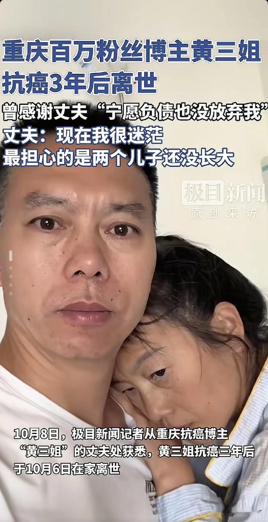 重庆博主“黄三姐”和乳腺癌斗争了3年,还是失败了,在10月6号去世,才49岁!曾