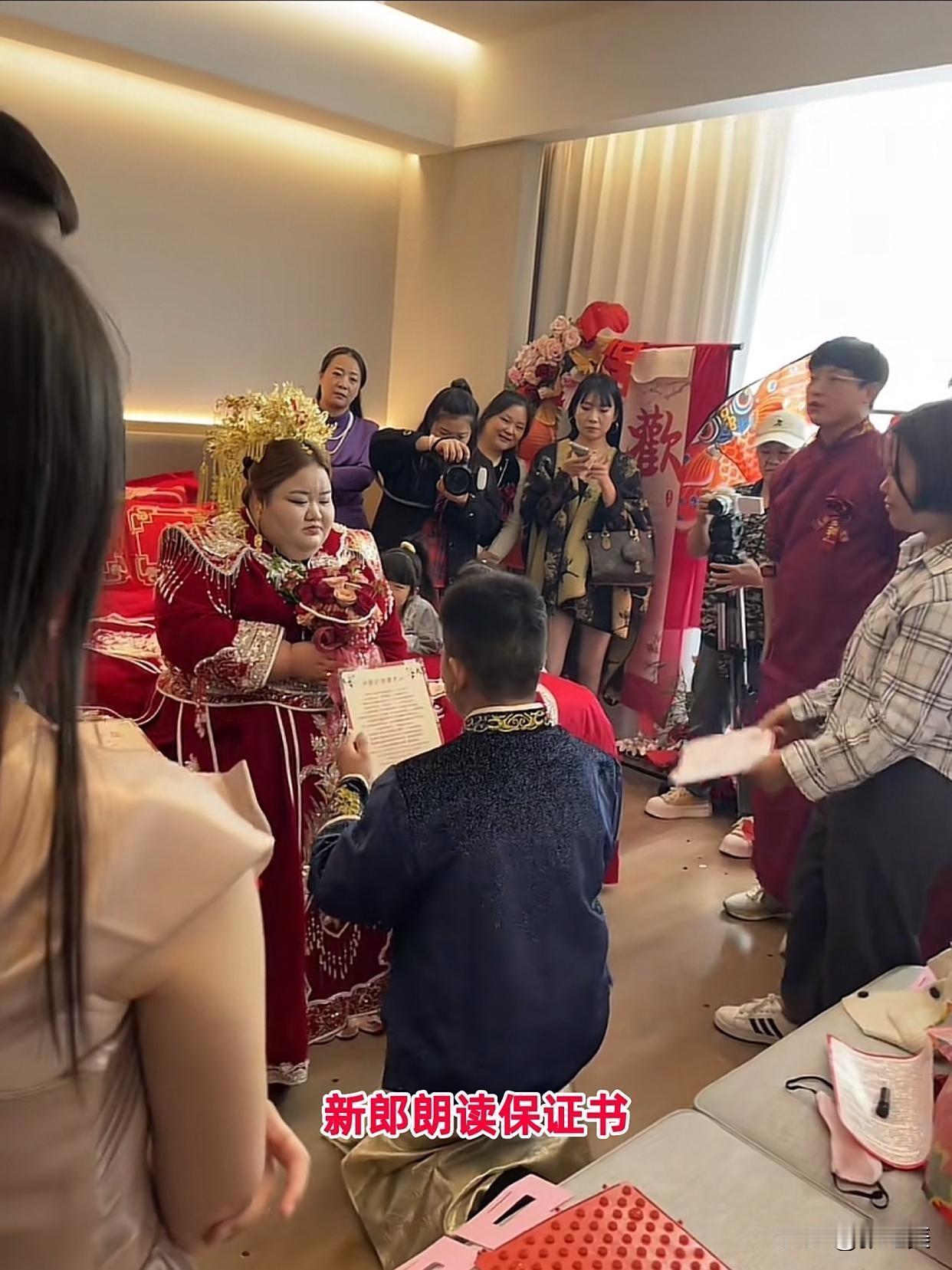 太现实了!小伙娶29岁胖新娘被群嘲 看到陪嫁清单后:换我我也娶! 俗话说“萝卜青菜各有所爱”,但当河北邯郸这位28岁小伙娶了29岁的胖新娘时,还是引发了全网热议——直到陪嫁清单曝光,网友们瞬间变脸:“是我,我也娶!” 近日,邯郸一段迎亲视频火了。视频里,新娘穿着大码秀禾服坐在床上,身材臃肿明显,双下巴瞩目;一旁的新郎身材纤瘦,两人站在一起,颜值和体型差让不少网友直呼“不搭”。 更让人意外的是,新郎宣读婚后守则时,新娘还“颐指气使”地让他大声点,周围亲友哄笑,新郎却一脸淡定。这画面一出,质疑声铺天盖地:“好好一小伙,咋找个这样的?”“这婚后怕是要被拿捏得死死的……” 结果没几天,新娘的陪嫁清单被曝出,直接让全网“真香”了!——现金200万、2斤黄金、碧桂园别墅一套,还有商铺等资产,总价值上千万! 而新郎呢?只是个普通修车工,踏实肯干但家境一般。这下网友们彻底懂了:“原来人家娶的是‘宝藏新娘’!这哪是娶媳妇,是少奋斗几十年啊!”“之前笑人家,现在轮到我羡慕了,胖点咋了?有钱又大方,换我我也娶!” 有人调侃新郎“花一份彩礼,娶了个‘移动金库’”,也有人酸溜溜地说“颜值不重要,财富才是硬道理”。但也有不少人觉得,两人是自由恋爱,新娘虽然体型胖,但家境优渥且性格爽快,和新郎的踏实互补,这选择没毛病。 其实婚姻如人饮水,外人看到的只是表象。有人追求颜值匹配,有人看重经济实力,只要双方觉得合适,就是最好的选择。就像这对新人,你觉得他们能幸福长久吗?