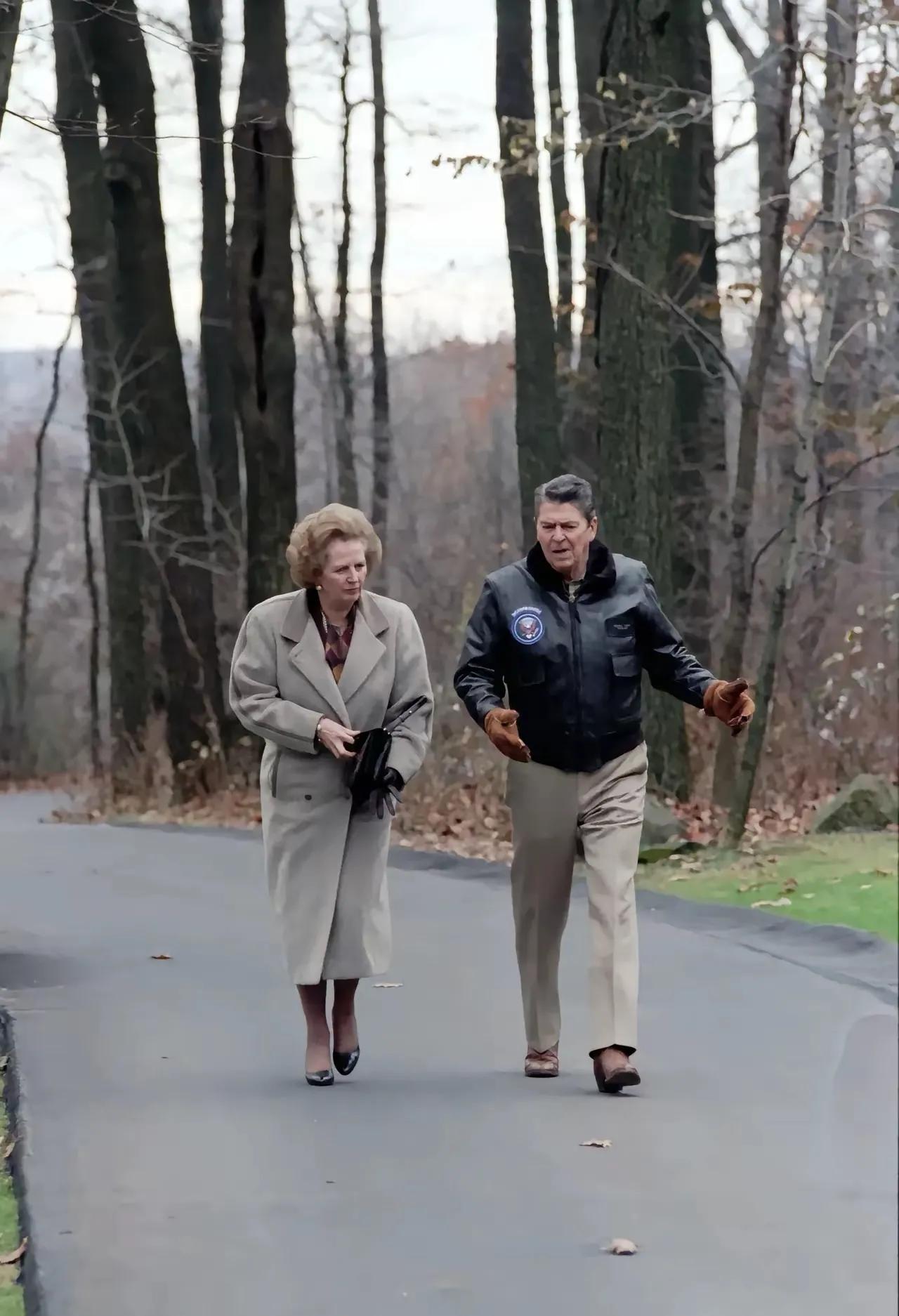 当年,里根总统与英国首相撒切尔夫人因某些观点相左而争论不休。在这样的情境下,二人边走边谈,那种感觉既有些紧张,又带着一丝轻松。在这种氛围中开展外交交谈,着实颇具意义。 看来,这两位总统与首相能将工作和生活平衡得恰到好处,这样的状态真值得称赞。当年,他们在身材相貌上皆是一流水准,无论走到何处都备受瞩目。而他们因政见不同产生的争论,也成了一道独特的风景线。