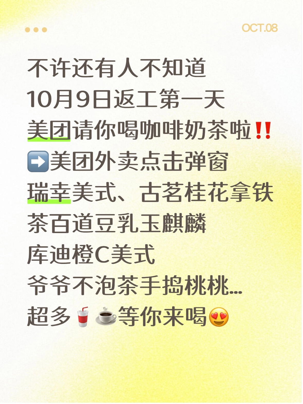 有时候比老板更懂我心的,是美团外卖🍋返工第一天打开App,突然跳出“返工请客”