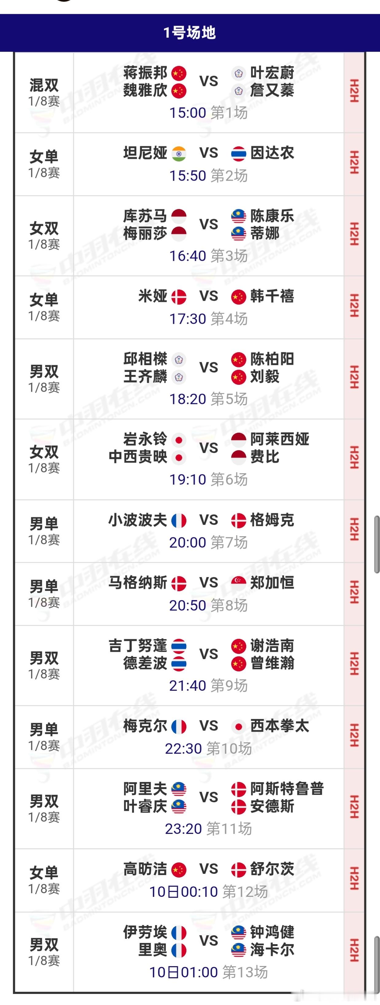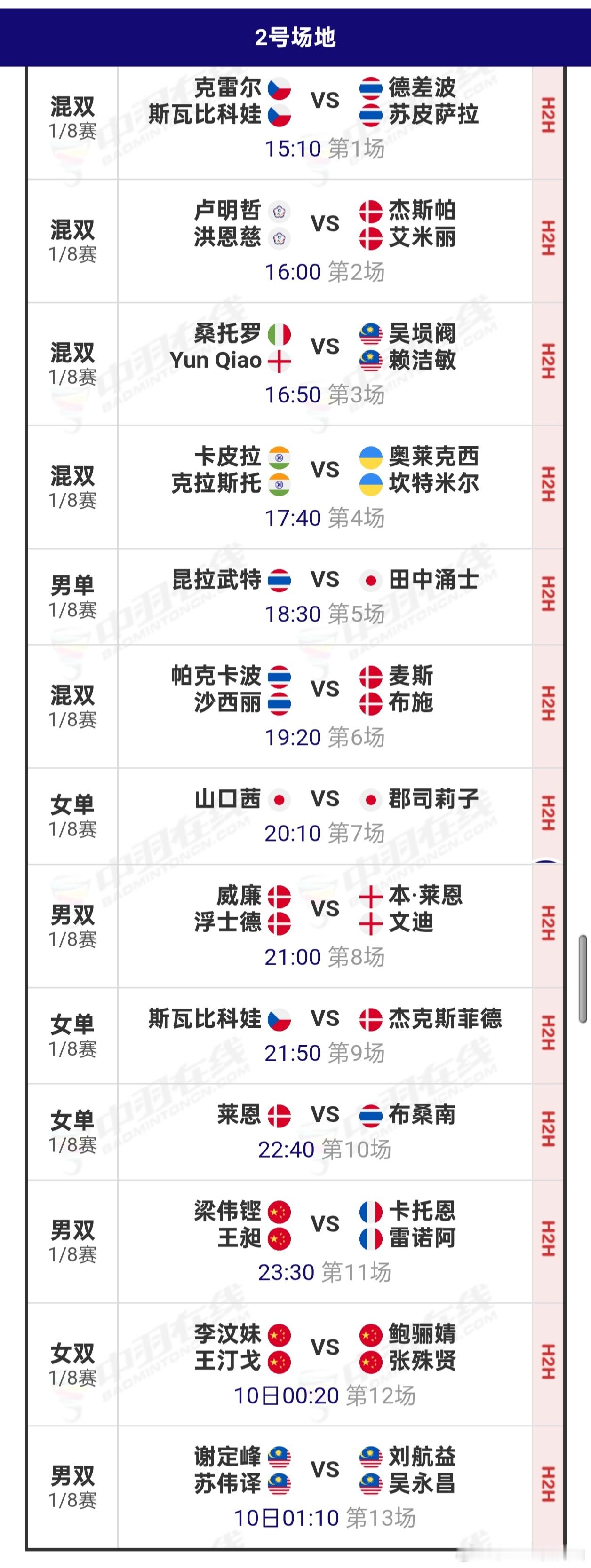2025年北极羽毛球公开赛 10月9日各单项16进8赛程,15点开赛: