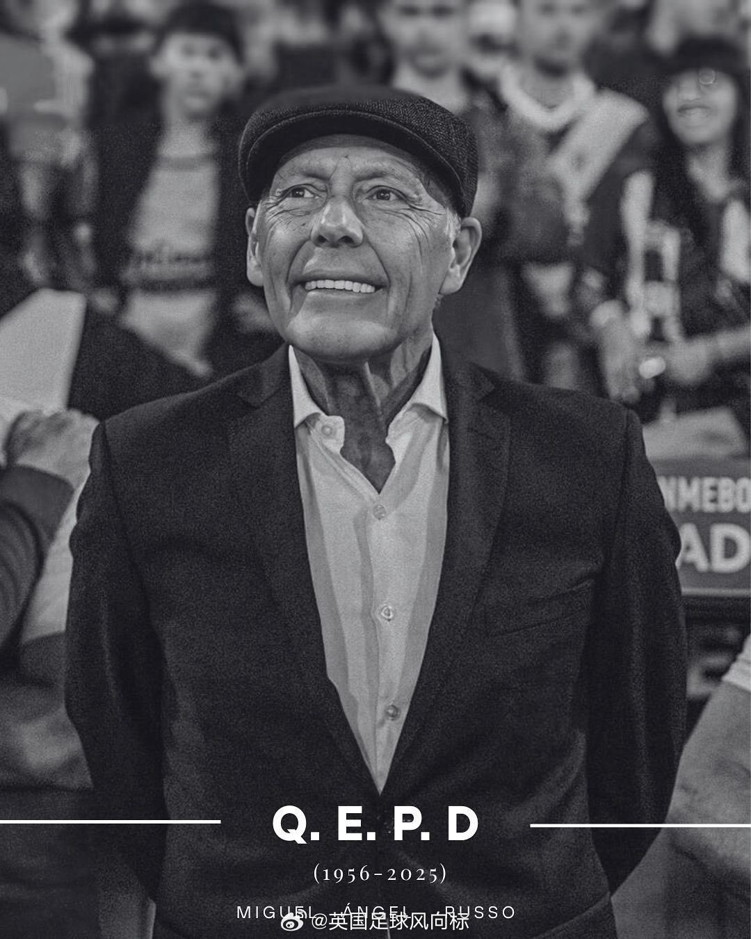 阿根廷豪门博卡青年官方宣布,球队的主帅米格尔-安赫尔-鲁索因病去世,享年69年。根据阿根廷媒体的报道,鲁索自2017年开始,就一直与癌症进行斗争。