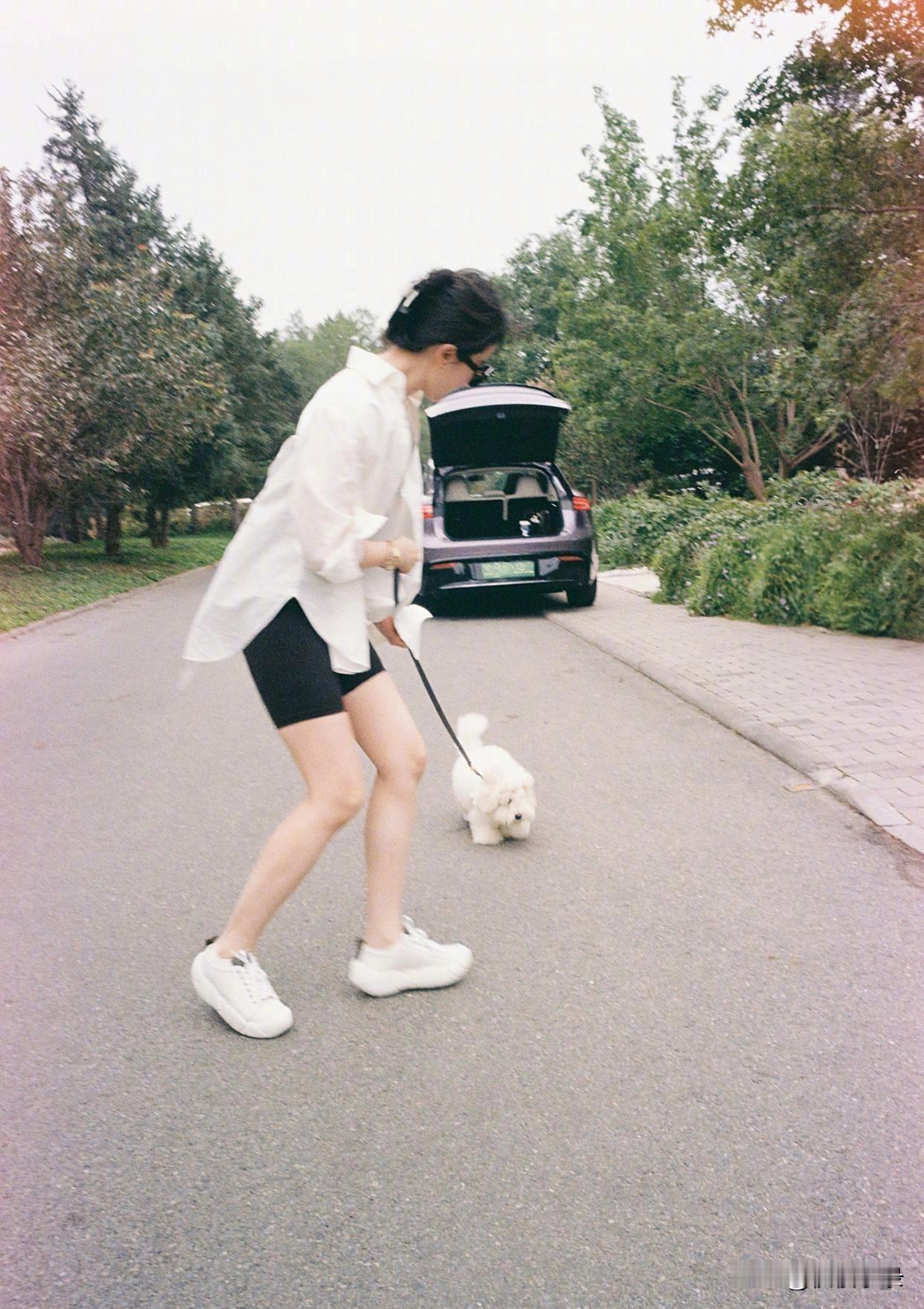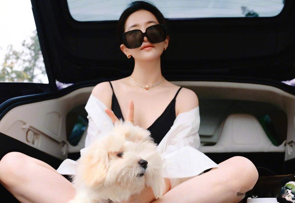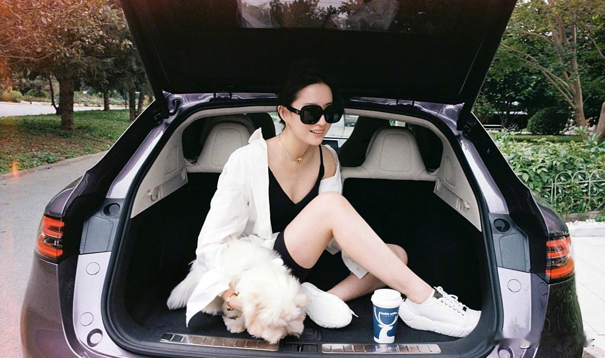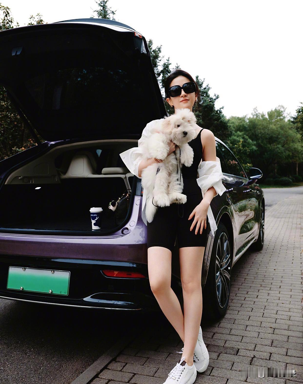 刘亦菲开着小车,带着小狗去度假了,她戴着墨镜,身穿白衣黑裤,又美又飒![赞][赞]
