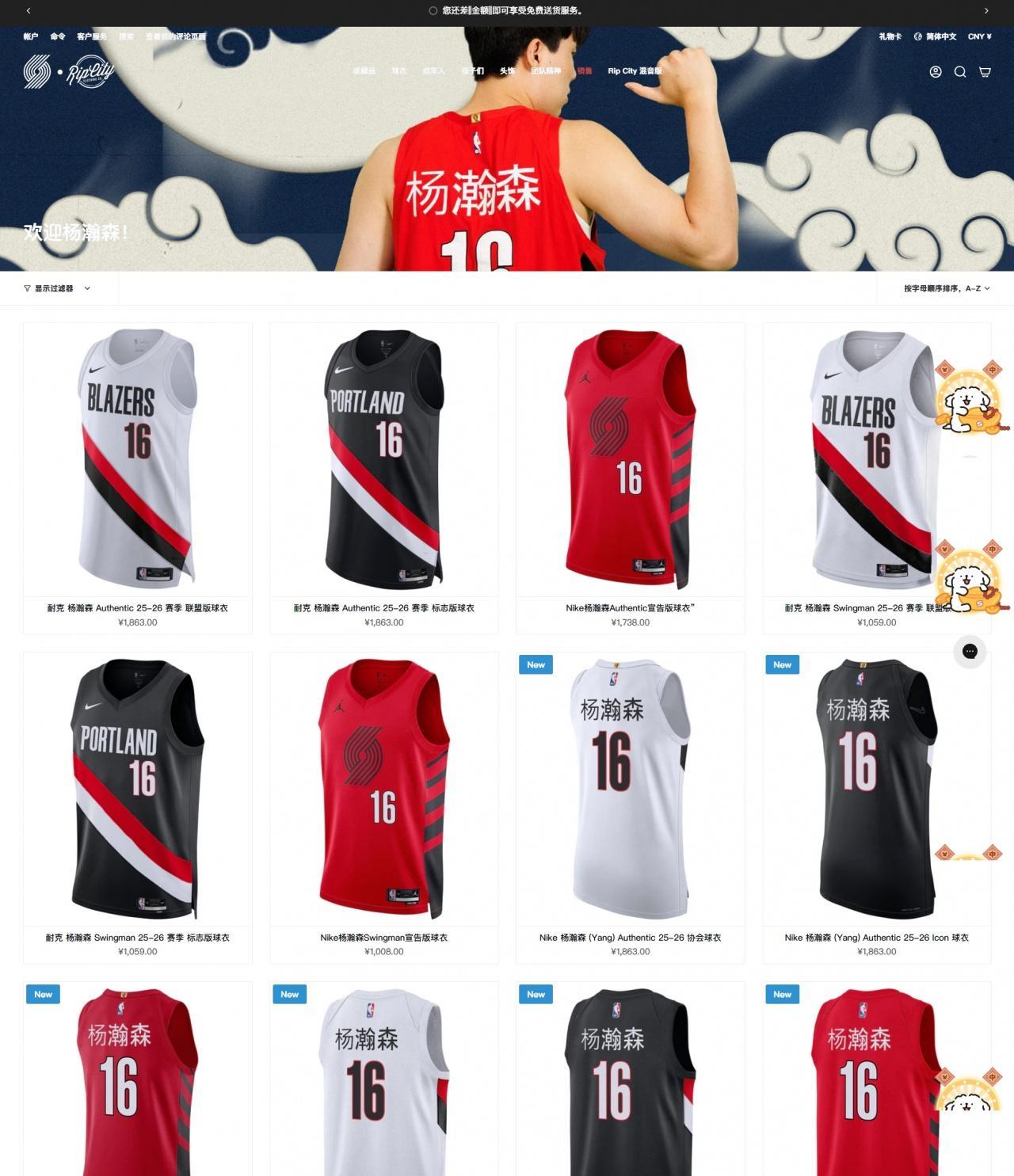 杨瀚森新球衣被开拓者和NBA推出,球迷版都人民币1088元 杨瀚森成为开拓者的摇
