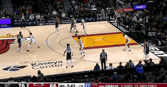 好夸张!这种空接也就文班能完成! 在今天NAB季前赛马刺对阵热火的第三节比赛中,