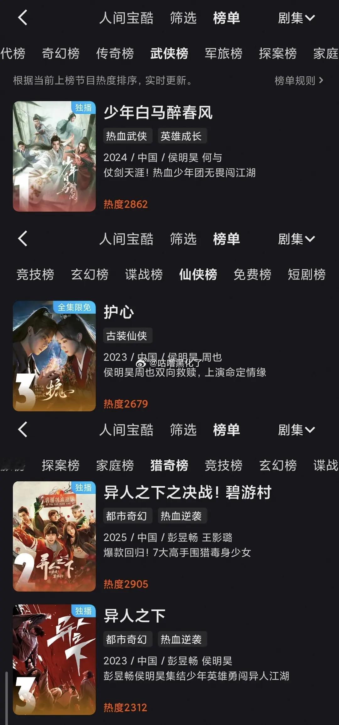 入青云👖站内四榜登顶,拉动侯明昊四部老剧热度飙升![点赞]