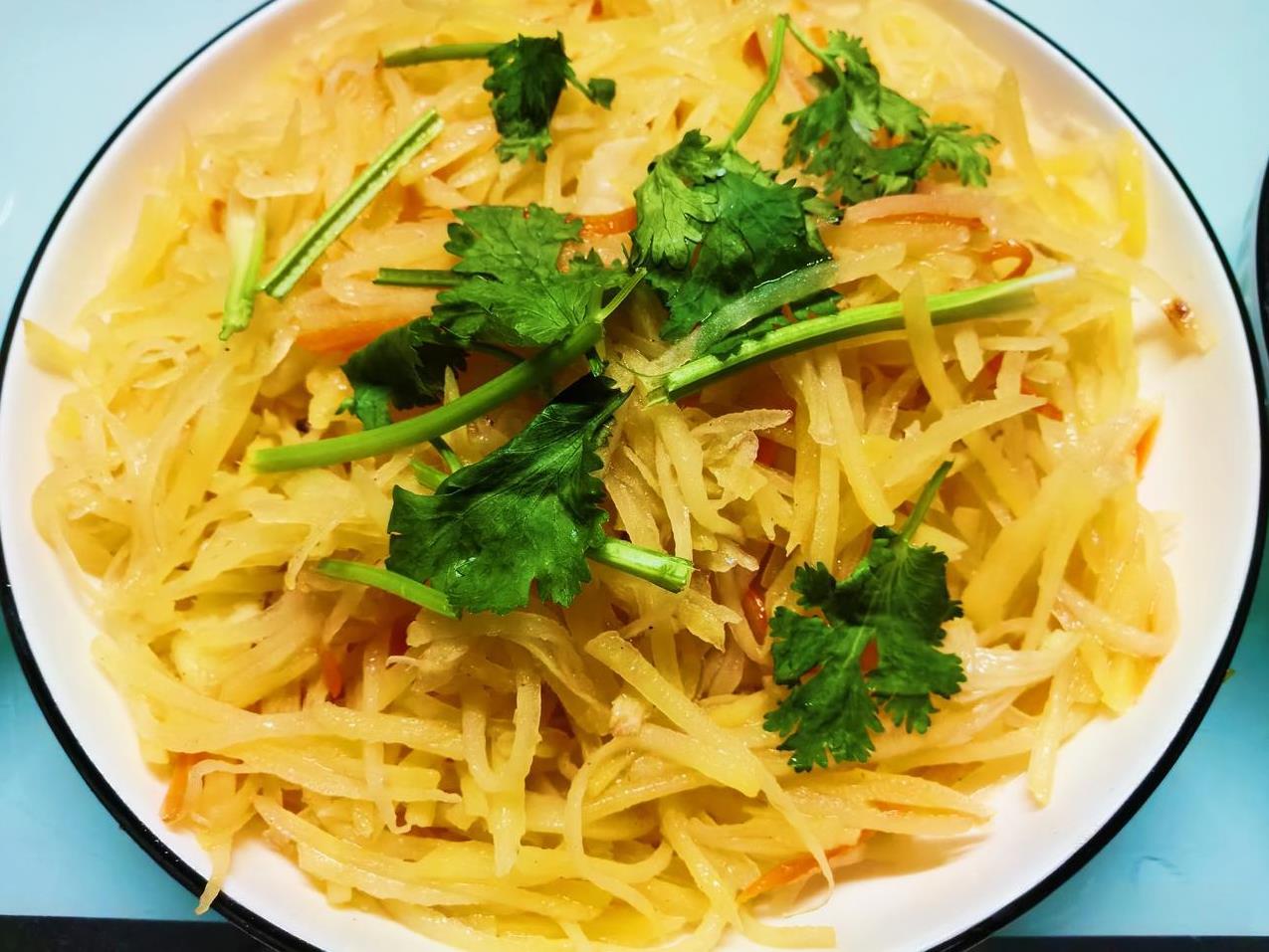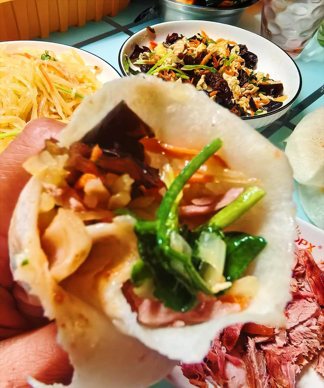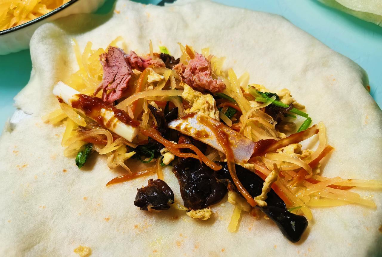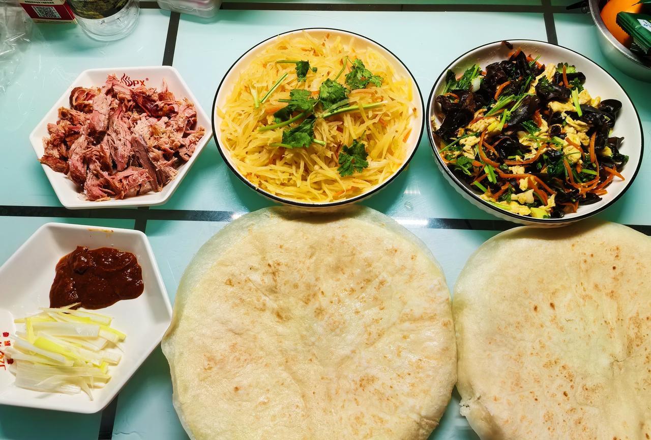 从哈尔滨带来的卷饼,今天终于吃完了,儿子说太好吃了! 回哈尔滨的时候跟老妈吃了好几次卷饼,卷土豆丝,卷豆芽,卷葱蘸大酱,还有猪头肉。都是最普普通通的家常菜,为什么卷上饼就变得那么好吃了呢? 回杭州前,特意去比优特超市买了一袋卷饼带回来。虽然网上啥都有卖的,但亲自背回来的总觉得家乡的味道更浓烈。 上次吃了一半。今天把剩下的一半全都打扫了。炒的土豆丝、鸡蛋木耳胡萝卜香菜丝、还有张家口的熏肉,葱和香其酱(也是哈尔滨带来的)。 这些菜如果就大米饭,你吃不出来什么特别,但是卷在饼里头,那味道那感觉就不一样了! 儿子吃了三张,我吃了两张,还是意犹未尽。下次到网上去买。 昨天还做了脊骨炖酸菜粉条,只放了盐、两个大料,一片姜。哎呀,嘎嘎香! 有网友跟我说:非姐,下沙有很多东北菜馆,你给点评点评。 真不好意思,我一家都没去过。 我住处附近好多家东北菜馆,天天大喇叭放着“大姑娘美大姑娘浪,大姑娘走进了青纱帐”、“东北人就唠东北嗑,该吃你就吃,该喝你就喝”,听着可亲切了,但我一次也没进去过。 我一般到外地,很少去找家乡菜。如果出去吃,就多尝尝当地的特色。 在广州吃过东北菜,也吃过东北烧烤,在杭州也吃过哈尔滨烧烤,都是陪家人去的。 总感觉不地道,贵不说,量还很少,怎么也不如在哈尔滨吃得正宗,吃得舒心。 也许是偏执,也许是一种习惯?我也不知道,还是喜欢在家做。