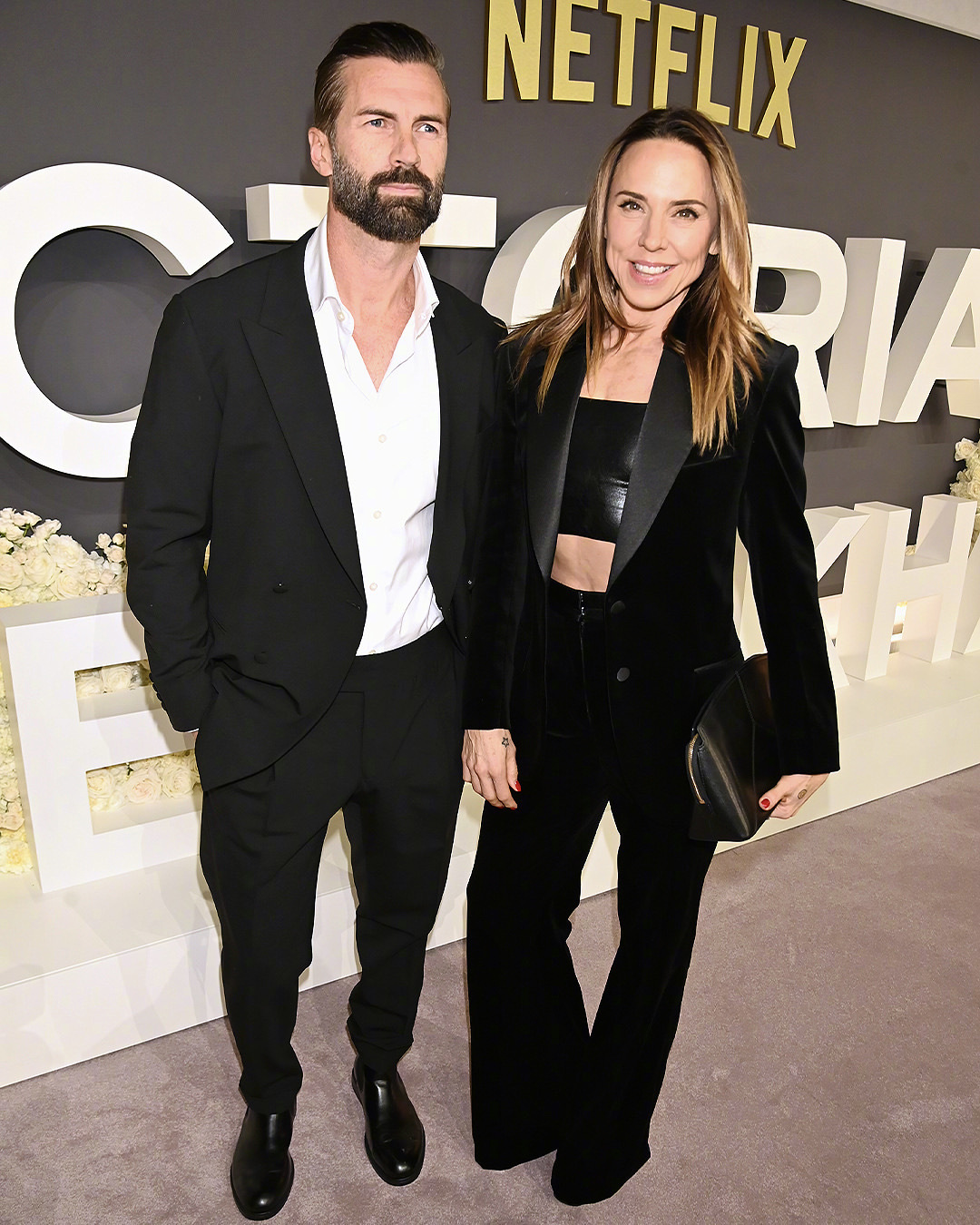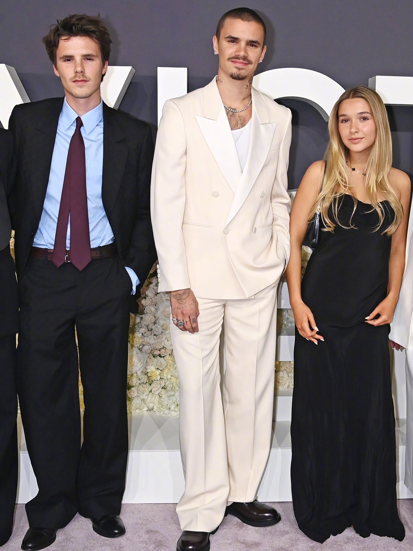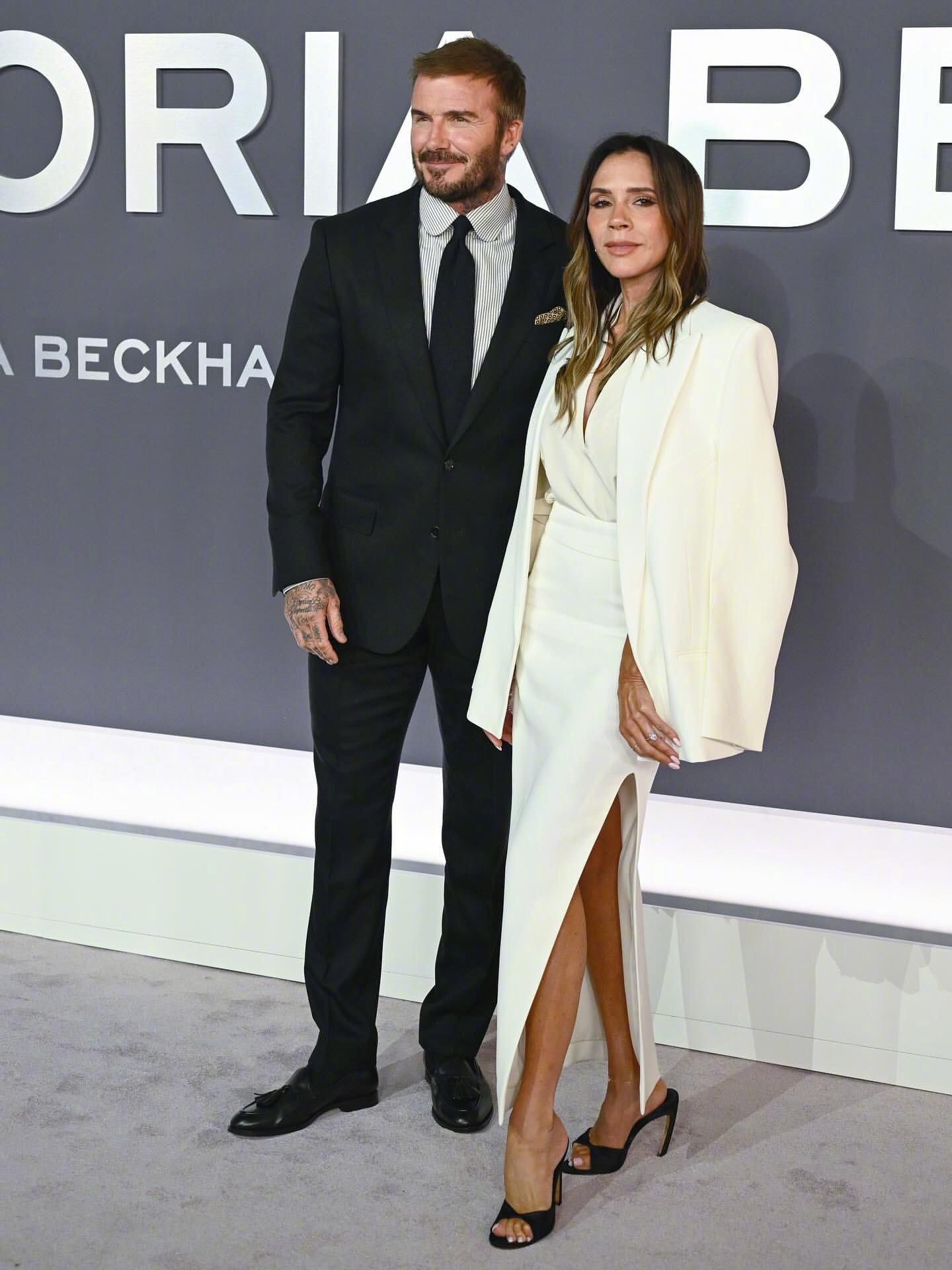 维多利亚·贝克汉姆身穿自己品牌的白色套裙亮相红毯,出席她全新 Netflix 纪录片《Say You’ll Be There》系列的首映礼。丈夫贝克汉姆及三个孩子——23 岁的罗密欧、20 岁的克鲁兹和 14 岁的小七女儿哈珀一同现身支持。克鲁兹的女友、29 岁的 Jackie Apostel 也一同出席。一家人黑白配优雅亮相。闺蜜伊娃及辣妹组合姐妹们也到场助阵。