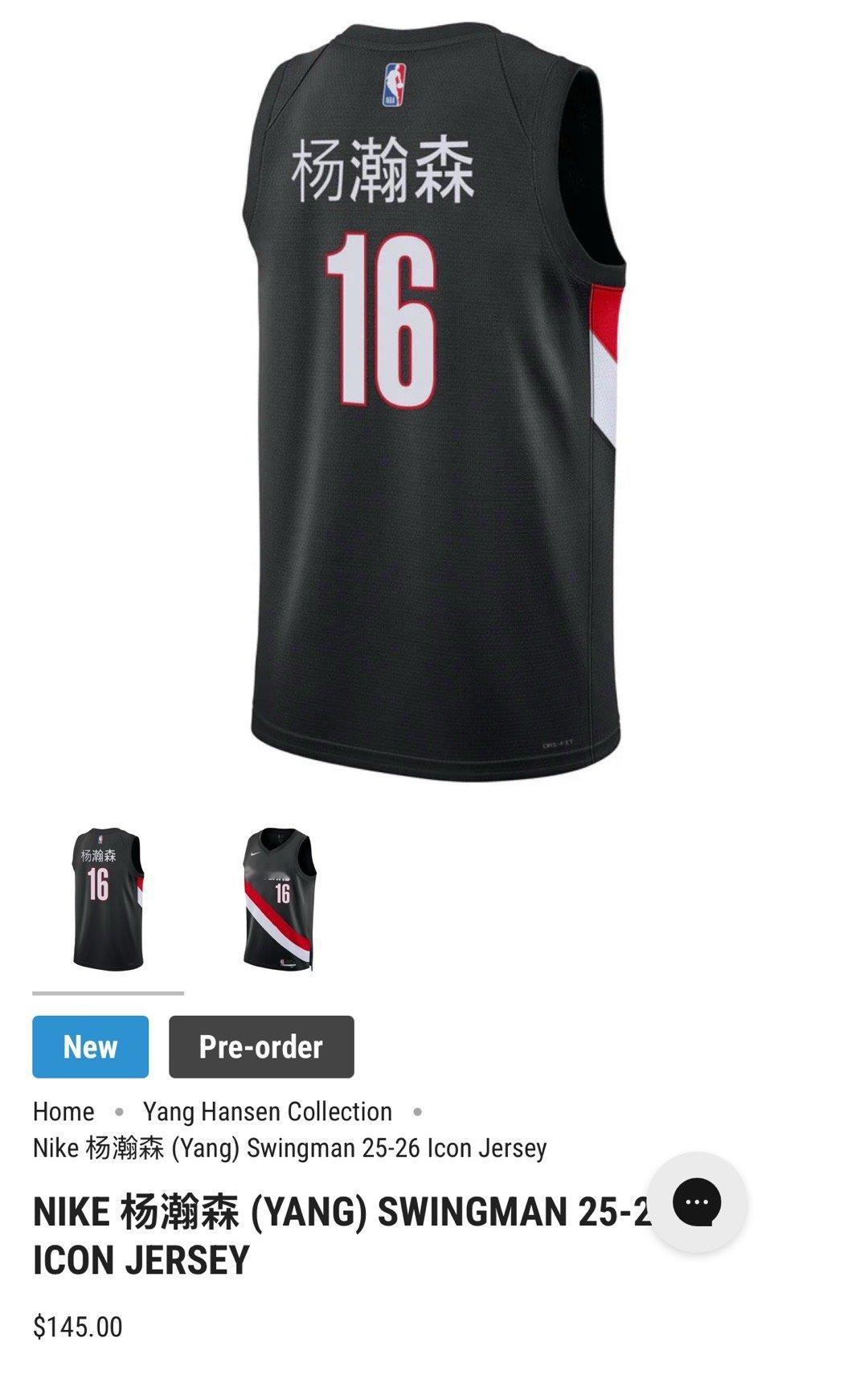 开拓者官方上架杨瀚森中文版球衣。