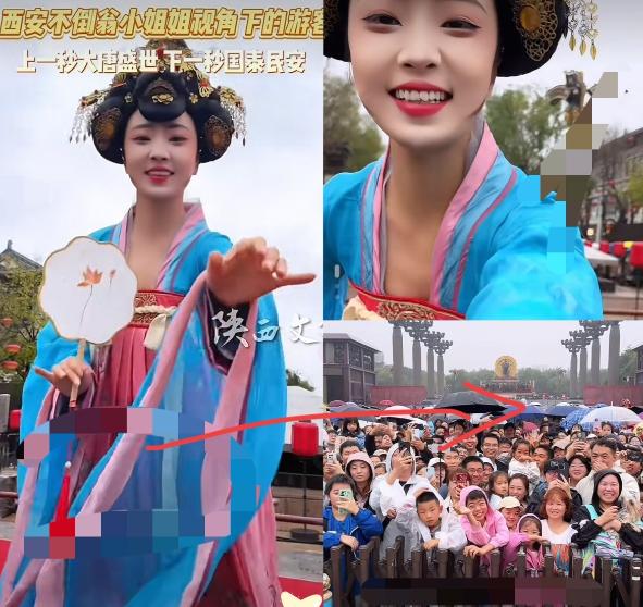 近日,西安大唐不夜城,不倒翁小姐姐表演时,竟然一时兴起,直接把游客手机拿过来翻转镜头,本来大伙还懵着,下一秒全被屏幕里的画面戳中,满屏都是笑! 国庆前后刷到不少景区视频,唯独西安大唐不夜城那段没头没尾的片段,让我反复看了好几遍。 不是因为有震撼的灯光秀,也不是因为表演多复杂,而是镜头里突然涌出来的那些笑脸,像撒了把糖在心里,甜得特别实在。 后来翻评论才知道,这段画面的源头,是个完全没按剧本走的小意外。 那天傍晚刚过六点,不夜城的灯就亮透了,暖黄色的光裹着仿唐建筑的飞檐,青砖路上挤得满满当当,全是扛着手机的游客。 穿唐装的小姐姐正在晃不倒翁,手里团扇摇啊摇,看到前排小孩举着手机拍,还特意弯腰让孩子摸了摸扇面,周围的笑声细碎又软和。 站在前排的游客小李,也举着手机想把这场景存下来,没成想下一秒,小姐姐转着不倒翁底座就过来了,趁他盯着屏幕的功夫,轻轻把手机接了过去。 这一下让周围瞬间静了,有人往前凑着看,有人小声嘀咕“这是要干啥”,连旁边拍表演的人,都赶紧把镜头转了过来。 谁知道小姐姐没说话,就笑着划了下手机屏幕,把镜头翻了个方向——对准了满场的游客。 也就是这一秒,安静全被炸开了,欢呼声飘得老远。屏幕里全是脸:扎羊角辫的小姑娘举着糖葫芦,糖渣还沾在嘴角。 一对情侣紧挨着,男生比耶,女生躲在后面笑,后排老爷爷搭着老伴的肩,眼睛眯成月牙,连卖糖画的师傅都停了勺子,对着镜头憨笑。 那天还飘着小雨,可没人顾得上躲,撑伞的、抱孩子的,都对着镜头咧着嘴,有人挥手,有人摆搞怪姿势,整个场子像浸在蜜里。 有考研失利来散心的学生,之前脸上还挂着愁,看到镜头也忍不住扬起嘴角。 这些笑没有滤镜,没有彩排,就是被突然关注时,最本能的开心。 其实不光大唐不夜城,国庆那阵好多地方都有这样的暖。 北京故宫里,游客跟着讲解员慢慢逛,看到喜欢的殿宇就停下来拍照,没人催也没人挤。 杭州西湖边,有人帮陌生人看了会儿行李,聊着聊着就熟了,临走还互相推荐景点。 这些没剧本的小事,比精心设计的表演还让人心里发暖。 大唐不夜城这些年总在搞新花样,唐装巡游、沉浸式剧本杀,都是奔着让游客新鲜。 可这次大家记住的,不是多炫酷的设计,就是那个翻镜头的瞬间。 因为它让游客从“看客”变成了“主角”,就像楼下阿姨顺手给你递把菜,公交车上有人帮你扶稳行李箱,这些不经意的在意,比任何刻意的安排都让人记挂。 现在再刷到这段视频,还是会被里面的笑声勾着笑。 原来日子好不好,真不用看什么大口号,就看老百姓愿不愿意笑、敢不敢敞着怀笑。 大唐不夜城的那幕,不过是把咱们平常日子里的幸福,刚好装进了手机镜头里,让更多人看见:原来国泰民安,就是这么一张张没掺假的笑脸啊。 对此,有网友表示,刷到这段视频时正赶项目加班,看到满屏笑脸突然就红了眼。 这哪是景区片段啊,是咱们普通人日子里的甜!不用华丽布景,不用刻意煽情,大爷大妈的耶,小孩沾着糖渣的笑,比任何‘盛世宣传’都实在,这才是国泰民安该有的样子!” 还有的网友表示,一开始以为是剧本,直到看见卖糖画师傅慌忙放下勺子的憨笑,情侣下意识凑近的模样,才发现真骗不了人! 现在景区总搞花里胡哨的表演,倒不如这种反客为主的小互动,把镜头还给游客,才是真的懂大家想要啥。” 也有的网友认为,“国庆去了趟不夜城没赶上这幕,看视频都觉得遗憾!那些说炒作的人,怕是没见过陌生人因一个镜头突然笑作一团的模样 —— 这种没滤镜的快乐,是装不出来的,希望以后多些这样接地气的景区互动!” 那么到最后,你们是怎么看的呢? 如果各位看官老爷们已经选择阅读了此文,麻烦您点一下关注,既方便您进行讨论和分享,又能给带来不一样的参与感,感谢各位看官老爷们的支持!