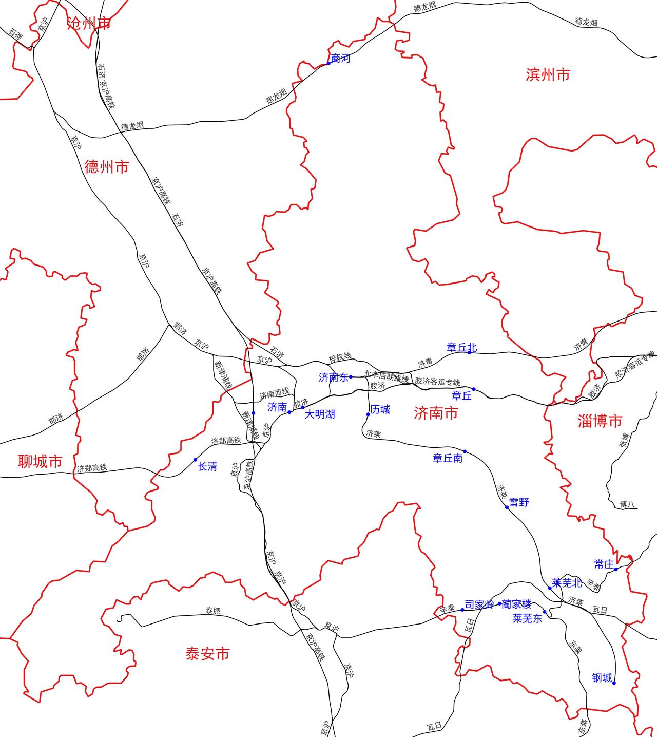 山东省济南市铁路及客运站分布图 根据铁路12306数据,山东省济南市目前有以下17个铁路客运站: 济南站 济南东站 济南西站 常庄站 大明湖站 钢城站 莱芜北站 莱芜东站 历城站 蔺家楼站 商河站 司家岭站 雪野站 章丘站 章丘北站 章丘南站 长清站