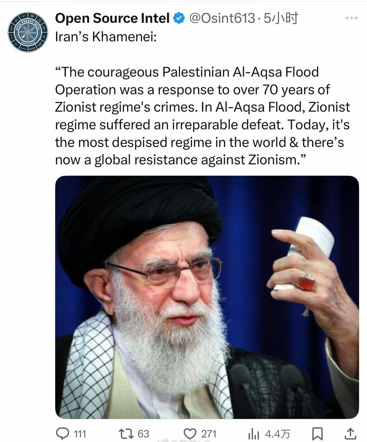 哈梅内伊发文称哈马斯发起的阿克萨洪水行动对犹太复国主义政权造成了不可挽回的失败。可事实是哈马斯已经跪了,刚刚签署了停火协议,接下去即将面临被解除武装。纵观两年来的巴以冲突,伊朗才是那个最大的输家。 苦心打造的抵抗之弧分崩离析了,自己的核设施又被严重摧毁,自诩中东军事强国可仅仅3天就让以色列夺取了德黑兰的制空权,把虚弱和无能彻底暴露。在哈马斯刚刚签署停火协议后,哈梅内伊坐不住了又出来宣传一波,可问题是这合时宜吗? 当初哈尼亚上门求援的时候,哈梅内伊可不是这种态度,而是说哈马斯发起阿克萨洪水行动的时候没有知会伊朗,所以伊朗现在爱莫能助。既然支持哈马斯,也认为哈马斯的行动有力的打击了以色列,那么当时哈梅内伊为什么不同意提供援助呢?