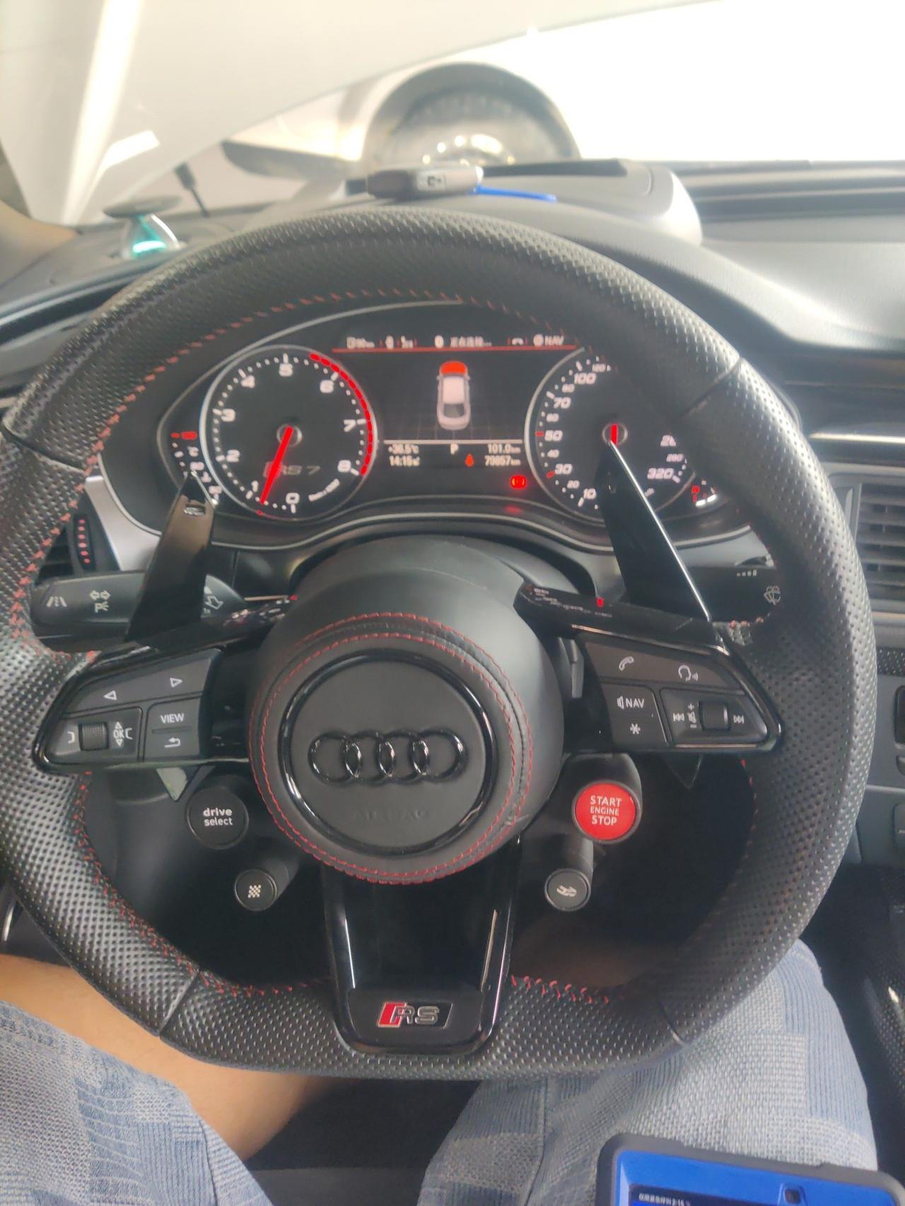作为老司机,一辈子总要开一次V8! 即使买不起新车,二手车还有一大把! 前两天就验了一台奥迪S7,4.0T V8发动机,2014年3月上牌,表显7万多公里,二手标价21.88万。 鉴于车龄比较大,买家就不是很在意外观漆面的刮蹭,他更关注有没有伤到结构的大事故,以及发动机的工况。 经勘验,外观改了RS7的包围,左侧大灯更换,前防撞梁更换,左侧翼子板骨架和减震器座连接处切割焊接打胶; 猜测为左前方发生了小角度偏置碰撞,导致翼子板骨架轻微变形,由于铝合金车身不好修复,所以只有切割更换了; 内饰也改了RS7的方向盘和仪表盘,这会涉及到主驾安全气囊的拆装,一般不会涉及副驾气囊,而检查副驾气囊更换了,仪表台也重新蒙皮了,由此推测主驾气囊也弹爆了! 仪表公里数也调表了,OBD电脑发动机模块显示,真实公里数13万! 虽然发动机没什么问题,就是轻微的渗油,但左前事故伤到了结构件,还炸了气囊,还调了表,这就不太令人满意了! 如果价格谈不下来,也就没有入手的必要了!
