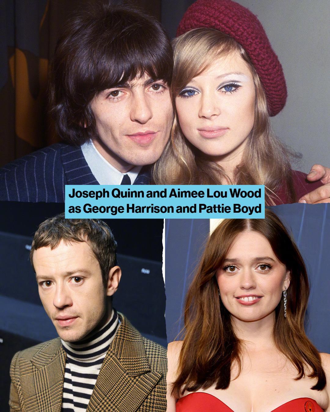 🎶 约瑟夫·奎因(Joseph Quinn)与艾米·卢·伍德(Aimee Lou Wood)饰演 乔治·哈里森与帕蒂·博伊德